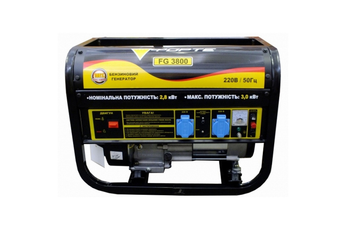 Призначення генератора Forte FG 3800Генератор Forte FG3800 може бути резервним джерелом електричного струму для забезпечення електроенергією заміського будинку, ремонтної бригади, будівництва і т.д.Генератор може забезпечити електроживлення газового котла (0,5 кВт), холодильника (0,7 кВт), пральної машини (1 кВт), посудомийної машини (1,2 кВт) і т. д.