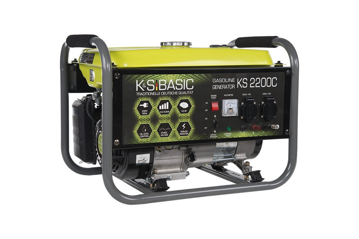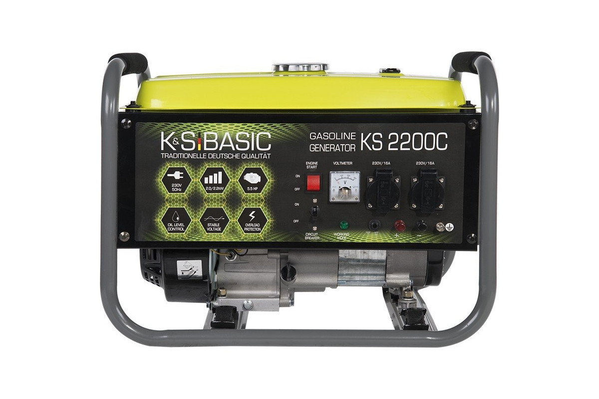 Призначення генератора Konner&Sohnen BASIC KS 2200СГенератор Konner&Sohnen KS 2200 С може бути резервним джерелом електричного струму для забезпечення електроенергією заміського будинку, ремонтної бригади, будівництва і т.д.Генератор може забезпечити електроживлення газового котла (0,5 кВт), холодильника (0,7 кВт) і т. д.