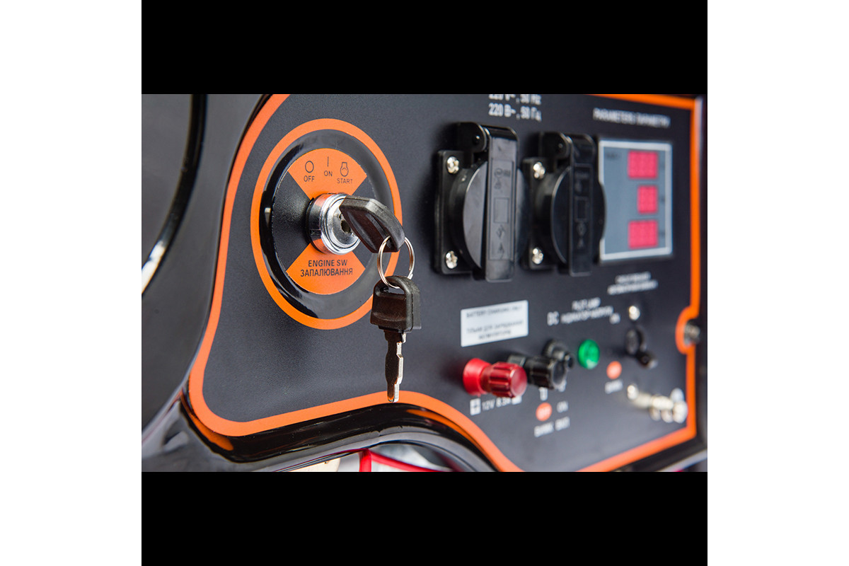 ![]() | Двигун: чотиритактний. Ручний/електричний запуск. Оснащений датчиком контролю рівня масла. Економічність: витрати палива становлять - 0,36 л/кВт·год. Автоматичний регулятор напруги забезпечує стабільність вихідної напруги незалежно від навантаження. |