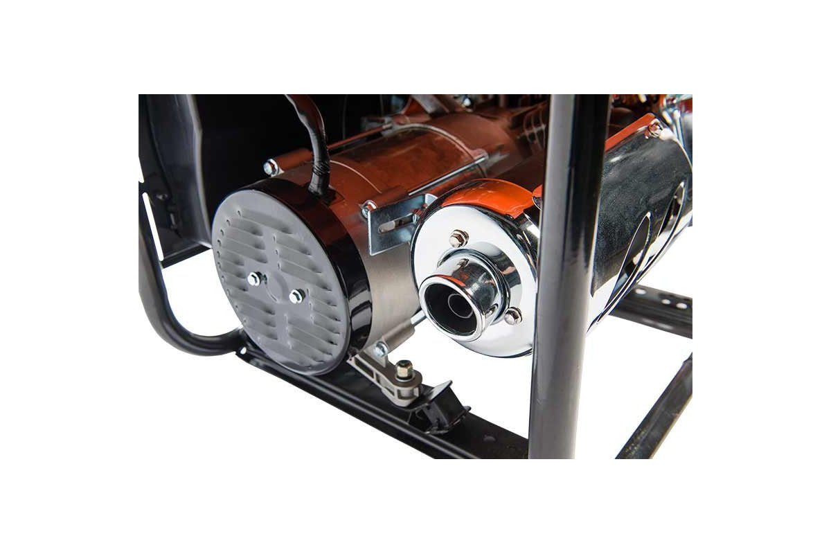 - Довгий ресурс компонентів: генератор зібраний на спеціалізованому заводі з дотриманням світових стандартів якості. Рама має антикорозійне покриття. Довговічність силового агрегату забезпечує система повітряного охолодження.