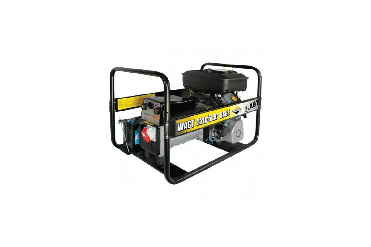 Призначення генератора AGT WAGT220/5 DC BSBEМодель AGT WAGT 220/5 DC BSBE генератора може використовуватися в якості резервного апарату, як для електродугового зварювання, так і джерела резервного електроживлення, для електроінструментів та електроприладів. Генератор може забезпечити електроживлення газового котла (0,5 кВт), холодильника (0,7 кВт), пральної машини (1 кВт), посудомийної машини (1,2 кВт), мікрохвильовій печі (0,9 кВт), масляного радіатора (2,2 кВт) і т. д.