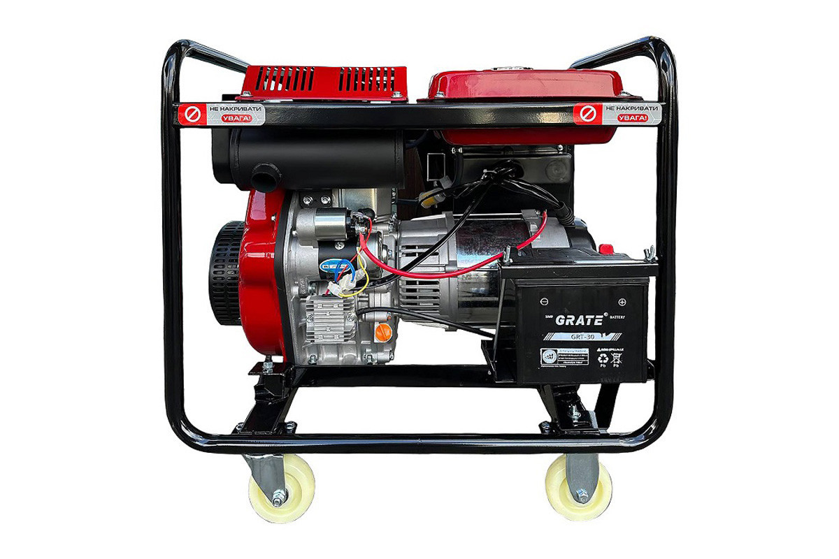 - Довгий ресурс компонентів: генератор зібраний на спеціалізованому заводі з дотриманням світових стандартів якості. Рама має антикорозійне покриття. Довговічність силового агрегату забезпечує система повітряного охолодження.