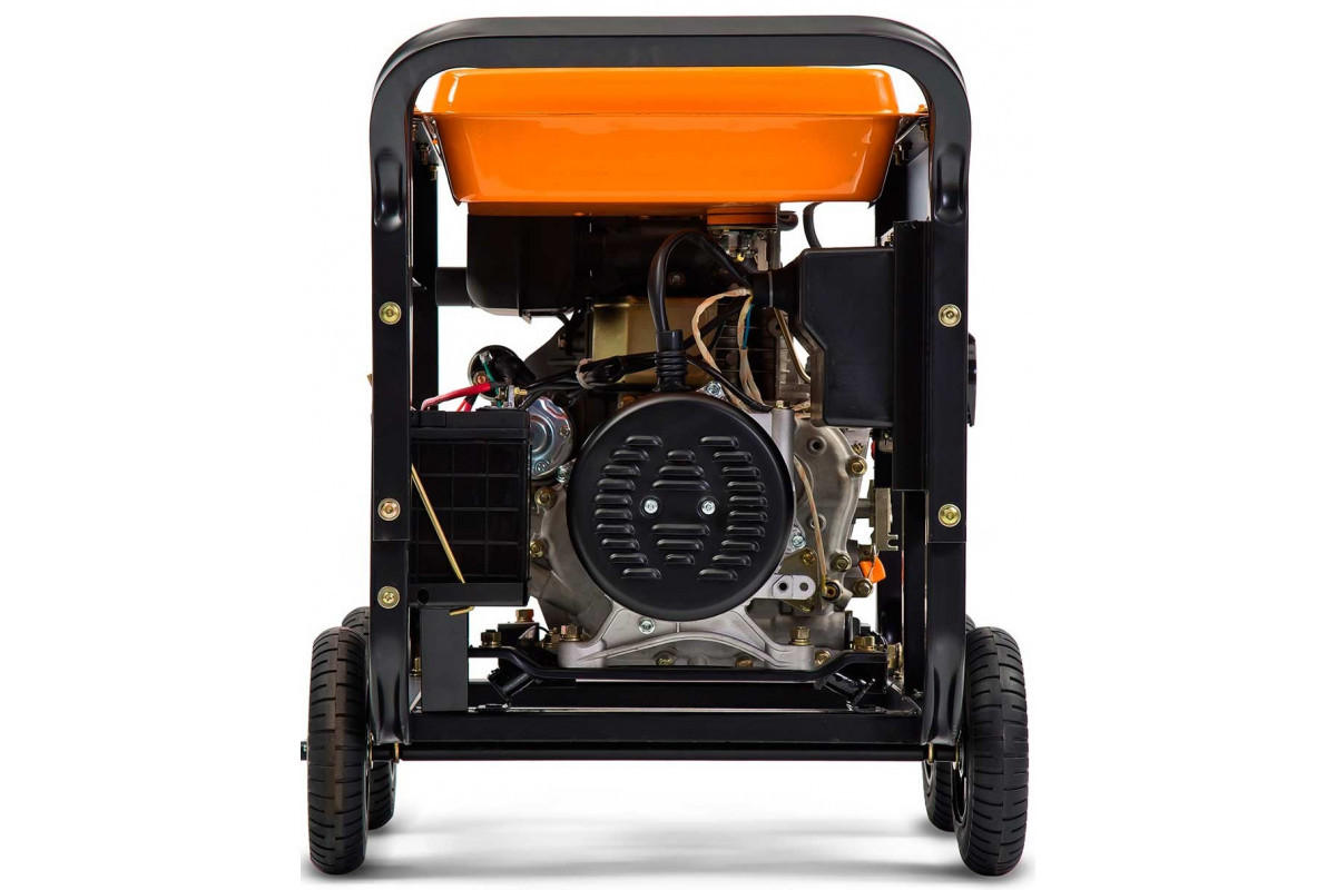 ![]() | Рама: в основі конструкції лежить трубчаста рама, яка забезпечує захист агрегату генератора, зручне перенесення і просту установку на будь-яку поверхню, в тому числі й нерівну. |
