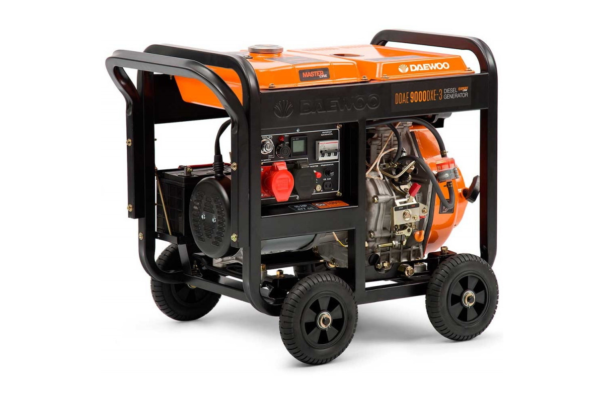 Призначення генератора Daewoo DDAE 9000XE-3Генератор Daewoo DDAE 9000XE-3 може бути резервним джерелом електричного струму для забезпечення електроенергією заміського будинку, ремонтної бригади і т.д.Генератор може забезпечити електроживлення газового котла (0,5 кВт), холодильника (0,7 кВт), посудомийної машини (1,2 кВт), мікрохвильовій печі (0,9 кВт), телевізори (0,4 кВт), ноутбука (0,5 кВт), комп'ютера (0,5 кВт), освітлювальних приладів (0,5 кВт), насоси для колодязя (1,2 кВт (пускова — на 3,6 кВт), електропили (1-2 кВт) і т. д.