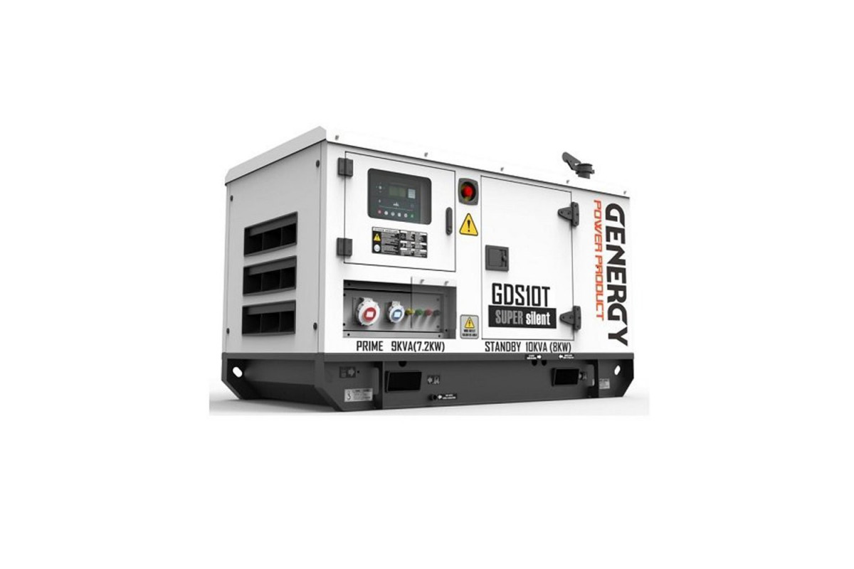 Модель стаціонарного генератора Genergy GDS10T, яка працює на дизпаливі, призначена для використання в якості резервного або основного джерела перемінного струму для забезпечення подачі електроенергії (лікарні, фабрики, виробничої лінії, заправочної станції, котельні, СТО), а також на будівництвах і в побутових потреб.Така електростанція може живити одразу декілька споживачів, сумарною кількістю 7,2 кВт: приватний будинок, дачу, офіс, магазин, будівельний майданчик, виробниче підприємство, і т.д.