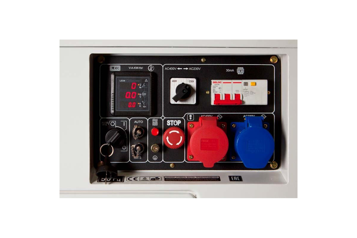 - AVR: автоматичний регулятор напруги гарантує роботу генератора без перевантажень і не допускає появи стрибків напруги.