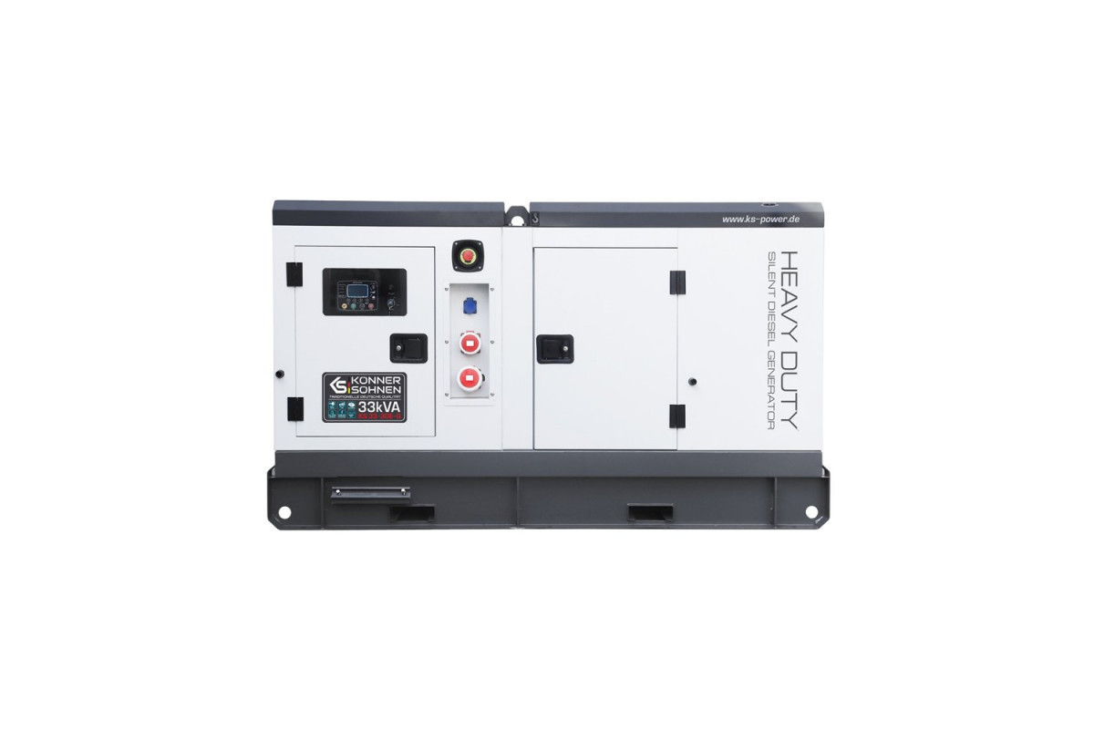 Модель стаціонарного генератора Könner&Söhnen KS 33-3DE-G, яка працює на дизпаливі, призначена для використання в якості резервного або основного джерела перемінного струму для забезпечення подачі електроенергії (лікарні, фабрики, виробничої лінії, заправочної станції, котельні, СТО), а також на будівництвах і в побутових потреб.Така електростанція може живити одразу декілька споживачів, сумарною кількістю 24 кВт: приватний будинок, дачу, офіс, магазин, будівельний майданчик, виробниче підприємство, і т.д.