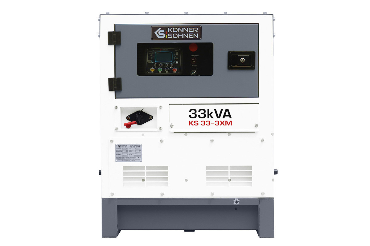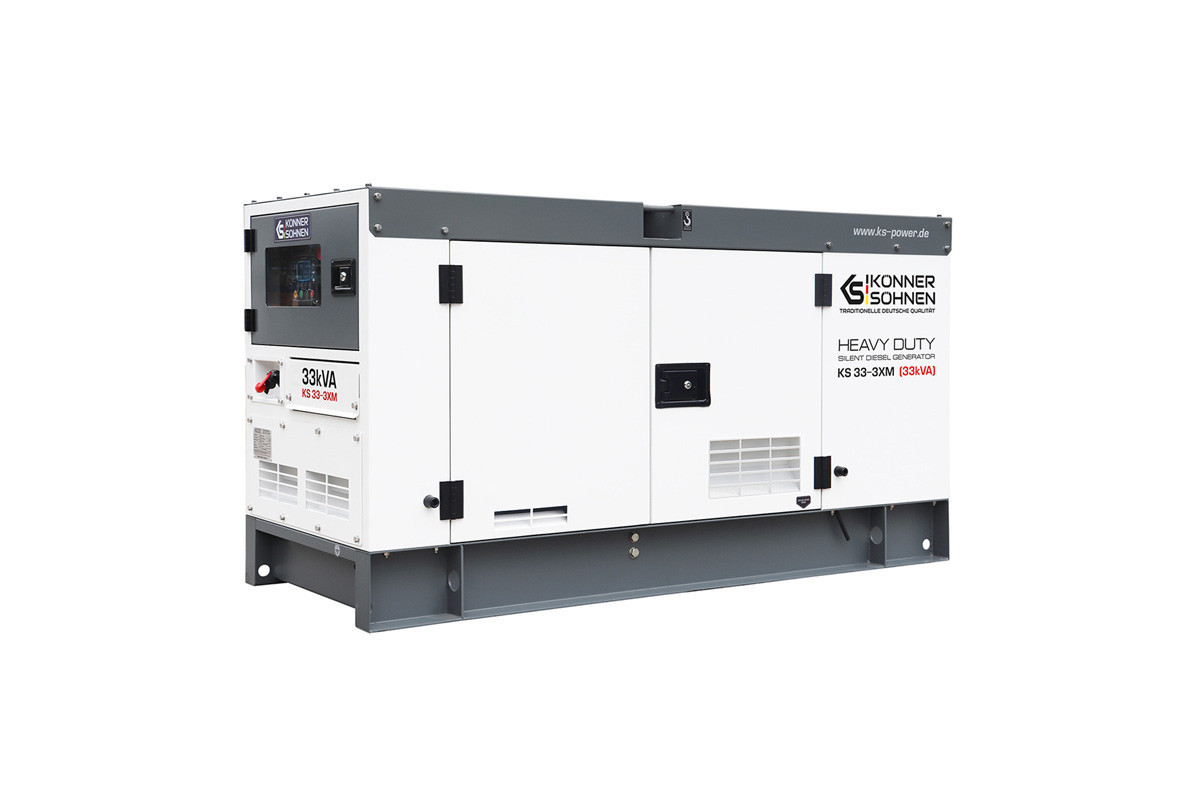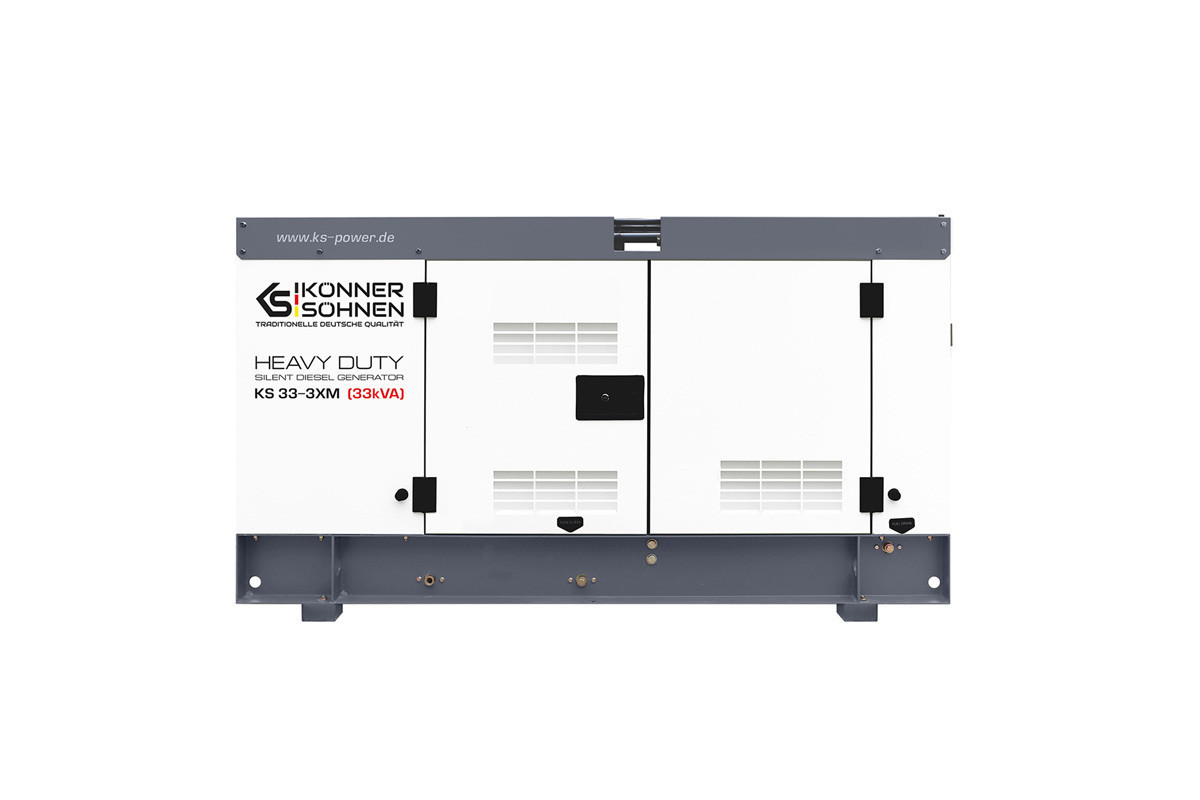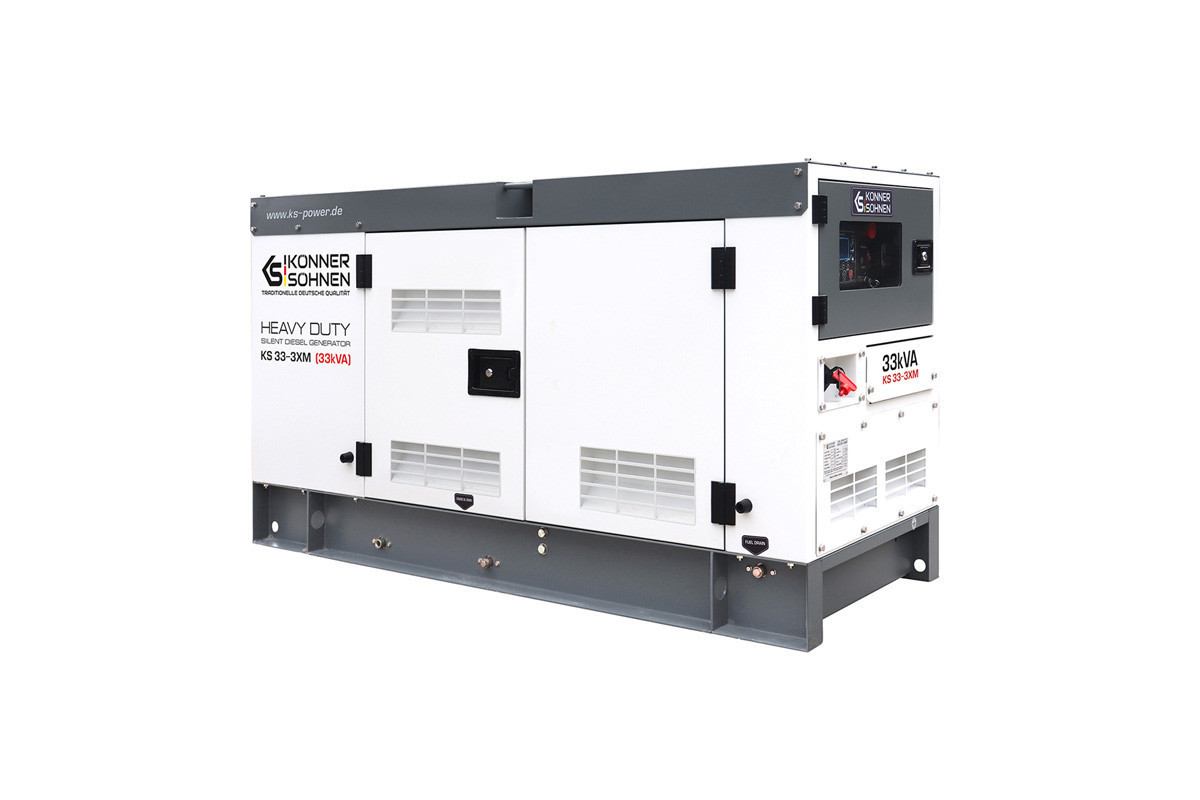 Модель стаціонарного генератора Konner&Sohnen KS 33-3XM, яка працює на дизпаливі, призначена для використання в якості резервного або основного джерела перемінного струму для забезпечення подачі електроенергії (лікарні, фабрики, виробничої лінії, заправочної станції, котельні, СТО), а також на будівництвах і в побутових потреб.Така електростанція може живити одразу декілька споживачів, сумарною кількістю 30 кВа: приватний будинок, дачу, офіс, магазин, будівельний майданчик, виробниче підприємство, і т.д.