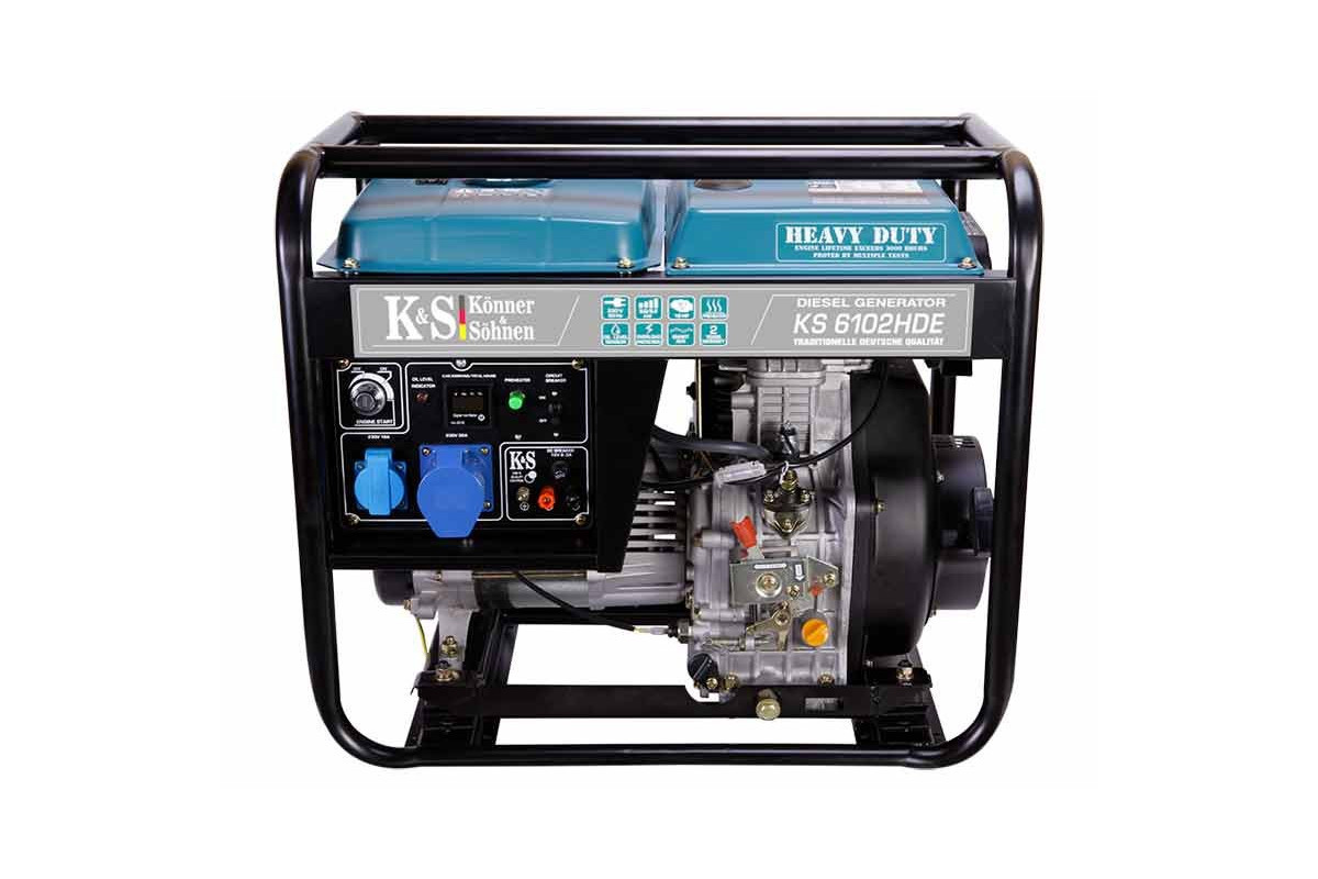 Генератор Konner&Sohnen KS 6102HDE може бути резервним джерелом електричного струму для забезпечення електроенергією заміського будинку, ремонтної бригади, будівництва і т.д.Дизельний генератор 5 квт може забезпечити електроживлення газового котла (0,5 кВт), холодильника (0,7 кВт), пральної машини (1 кВт), посудомийної машини (1,2 кВт), мікрохвильовій печі (0,9 кВт), масляного радіатора (2,2 кВт) і т. д.