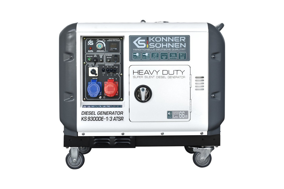 Генератор Konner&Sohnen KS 9300DE-1/3 ATSR SUPER S (Euro V) може бути резервним джерелом електричного струму для забезпечення електроенергією заміського будинку, ремонтної бригади, будівництва і т.д.Генератор може забезпечити електроживлення газового котла (0,5 кВт), холодильника (0,7 кВт), пральної машини (1 кВт), посудомийної машини (1,2 кВт), мікрохвильовій печі (0,9 кВт), масляного радіатора (2,2 кВт) і т. д.