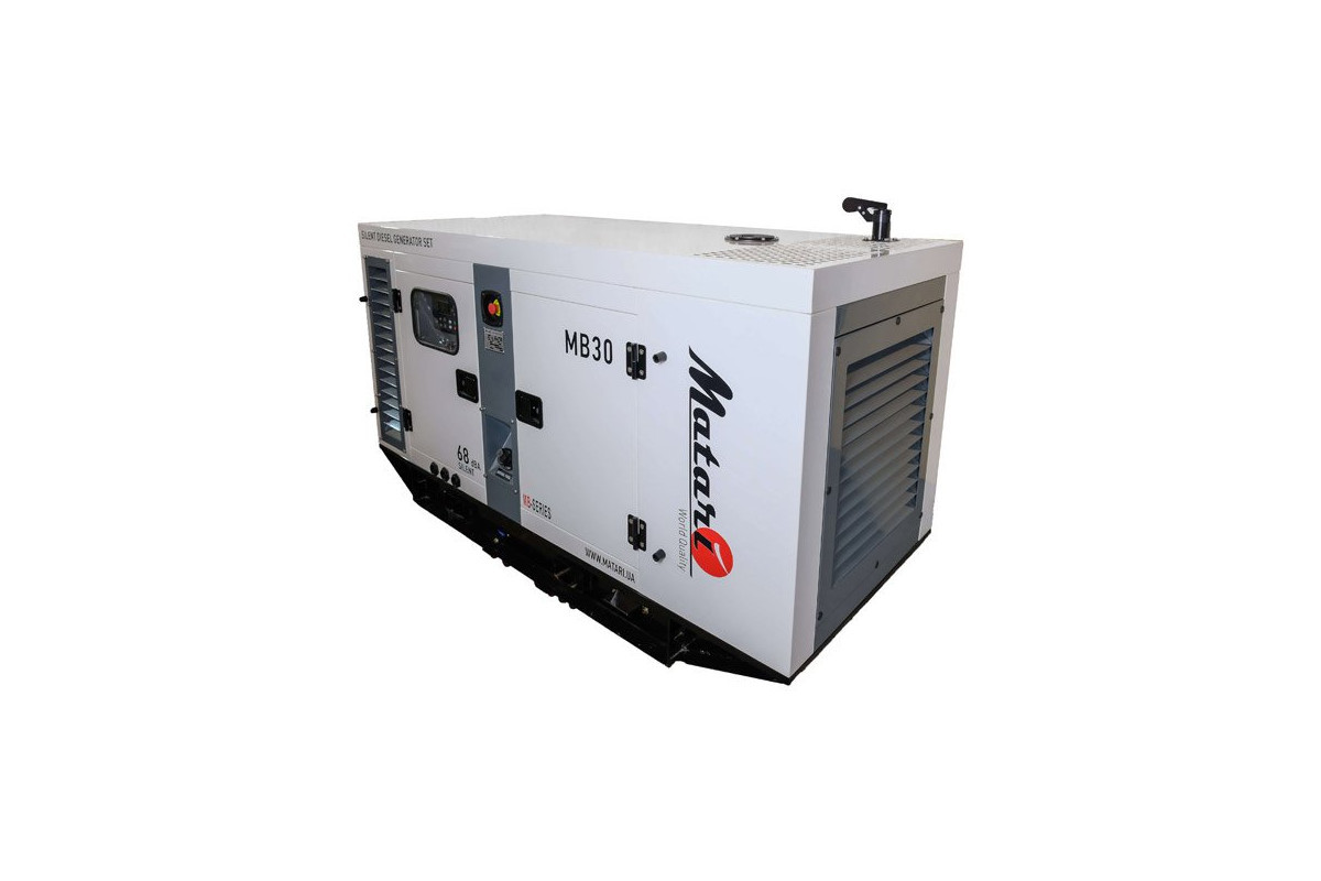 Модель стаціонарного генератора Matari MB 30, яка працює на дизпаливі, призначена для використання в якості резервного або основного джерела перемінного струму для забезпечення подачі електроенергії (лікарні, фабрики, виробничої лінії, заправочної станції, котельні, СТО), а також на будівництвах і в побутових потреб.Така електростанція може живити одразу декілька споживачів, сумарною кількістю 30 кВт: приватний будинок, дачу, офіс, магазин, будівельний майданчик, виробниче підприємство, і т.д.