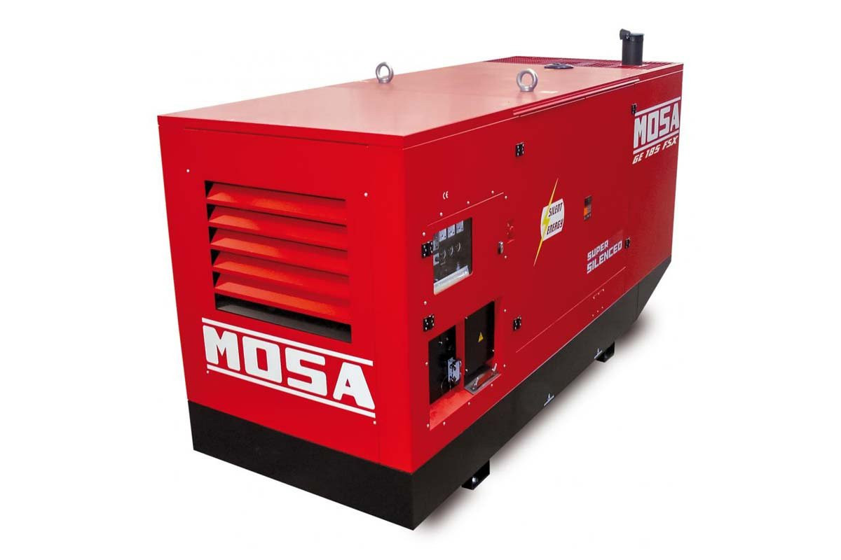 Модель стаціонарного генератора MOSA GE 185 FSX, яка працює на дизпаливі, призначена для використання в якості резервного або основного джерела перемінного струму для забезпечення подачі електроенергії (лікарні, фабрики, виробничої лінії, заправочної станції, котельні, СТО), а також на будівництвах і в побутових потреб.