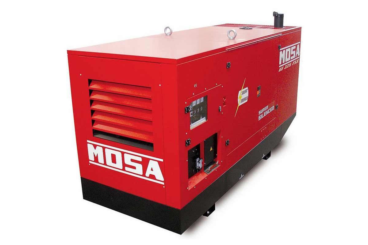 Модель стаціонарного генератора MOSA GE 225 FSX, яка працює на дизпаливі, призначена для використання в якості резервного або основного джерела перемінного струму для забезпечення подачі електроенергії (лікарні, фабрики, виробничої лінії, заправочної станції, котельні, СТО), а також на будівництвах і в побутових потреб.