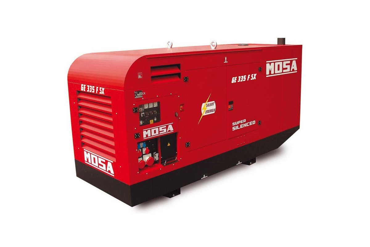 Модель стаціонарного генератора MOSA GE 335 FSX, яка працює на дизпаливі, призначена для використання в якості резервного або основного джерела перемінного струму для забезпечення подачі електроенергії (лікарні, фабрики, виробничої лінії, заправочної станції, котельні, СТО), а також на будівництвах і в побутових потреб.