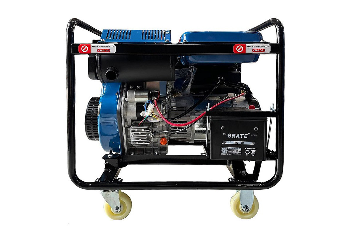 - Довгий ресурс компонентів: генератор зібраний на спеціалізованому заводі з дотриманням світових стандартів якості. Рама має антикорозійне покриття. Довговічність силового агрегату забезпечує система повітряного охолодження.