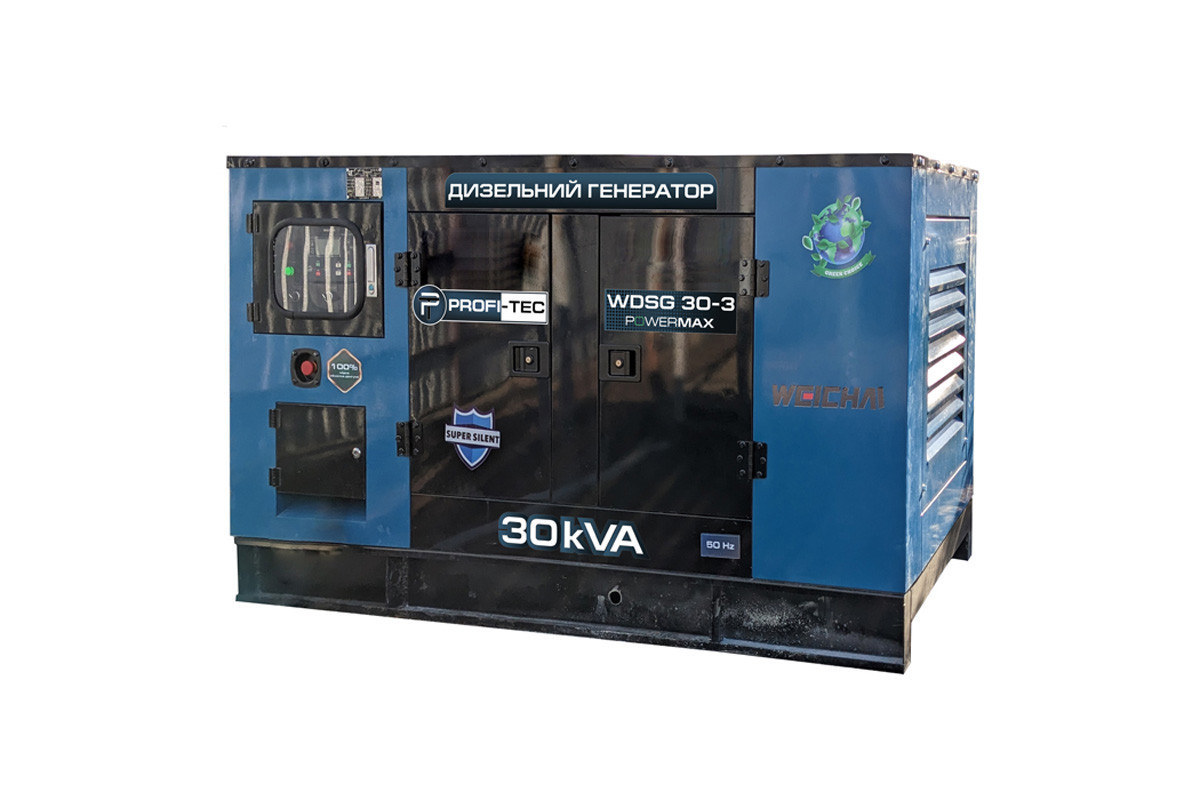 Модель стаціонарного генератора PROFI-TEC WDSG30-3 Power MAX, яка працює на дизпаливі, призначена для використання в якості резервного або основного джерела перемінного струму для забезпечення подачі електроенергії (лікарні, фабрики, виробничої лінії, заправочної станції, котельні, СТО), а також на будівництвах і в побутових потреб.