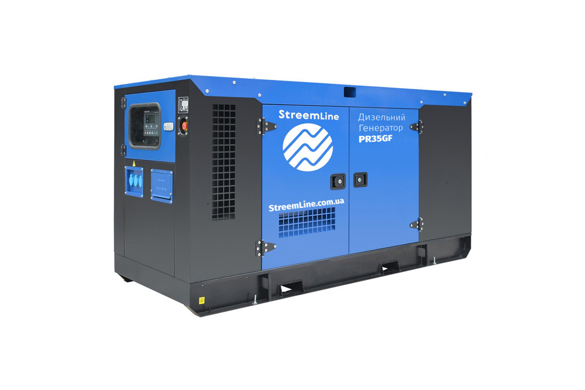 Модель стаціонарного генератора StreemLine PR35GF, яка працює на дизпаливі, призначена для використання в якості резервного або основного джерела перемінного струму для забезпечення подачі електроенергії (лікарні, фабрики, виробничої лінії, заправочної станції, котельні, СТО), а також на будівництвах і в побутових потреб.