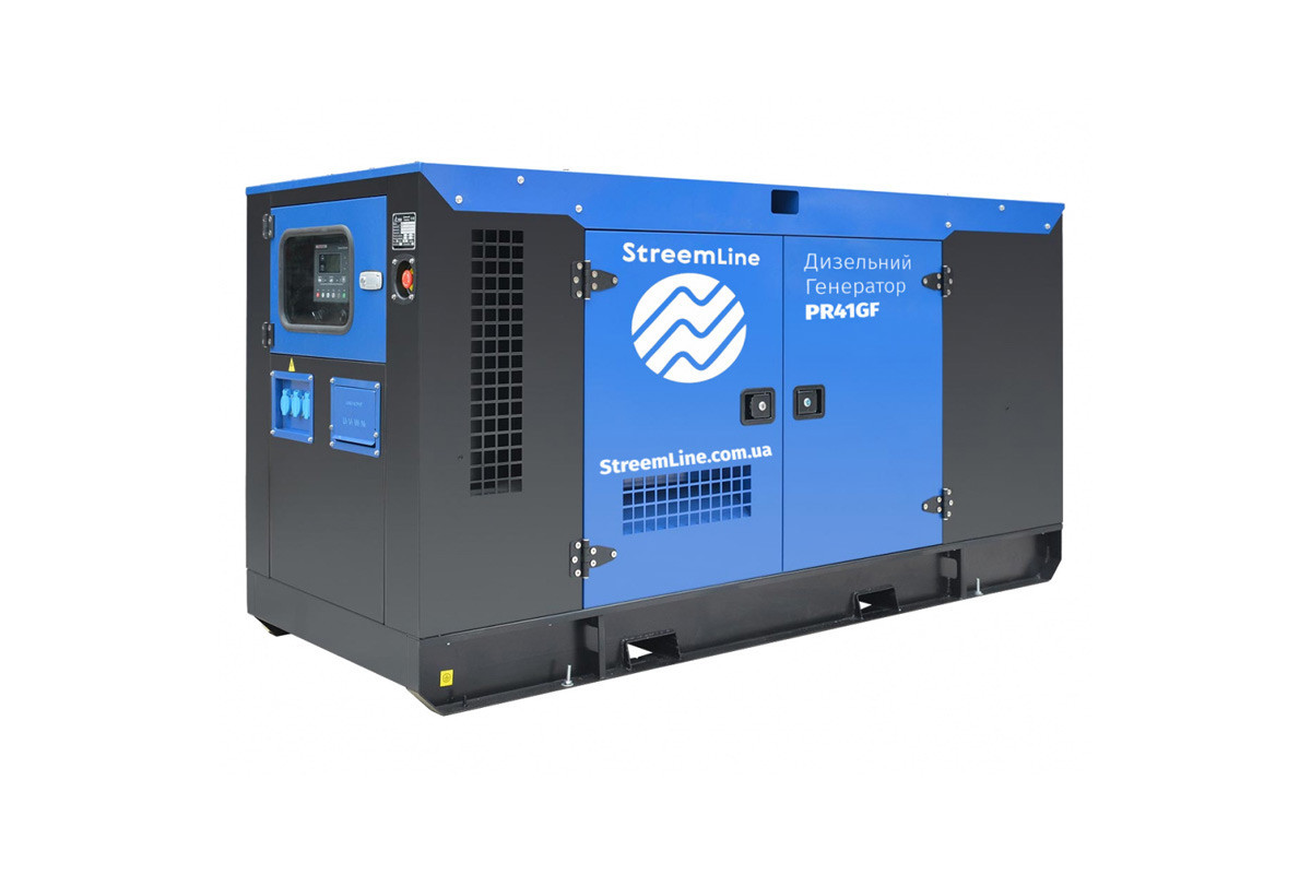 Модель стаціонарного генератора StreemLine PR41GF, яка працює на дизпаливі, призначена для використання в якості резервного або основного джерела перемінного струму для забезпечення подачі електроенергії (лікарні, фабрики, виробничої лінії, заправочної станції, котельні, СТО), а також на будівництвах і в побутових потреб.