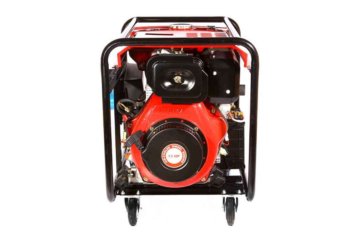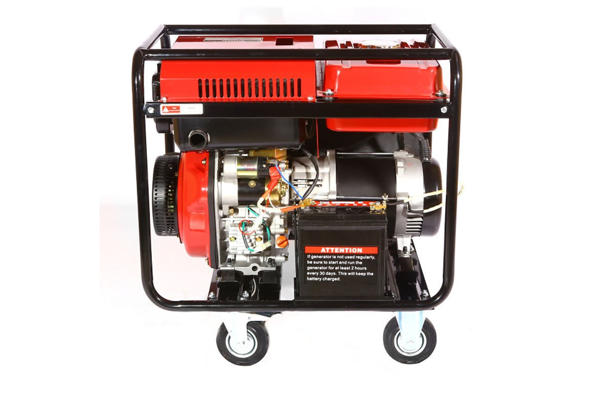 - Довгий ресурс компонентів: генератор зібраний на спеціалізованому заводі з дотриманням світових стандартів якості. Рама має антикорозійне покриття. Довговічність силового агрегату забезпечує система повітряного охолодження.