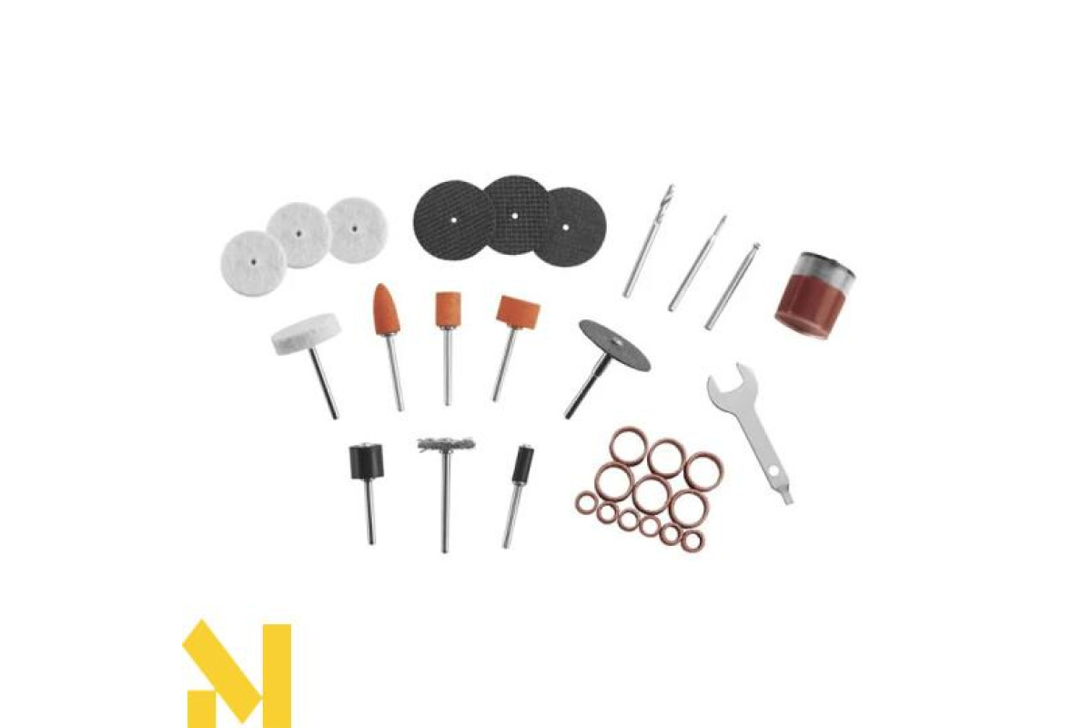 Комплектується набором аксесуарів 33 одиниці, які кріпляться прямо на корпусі інструменту