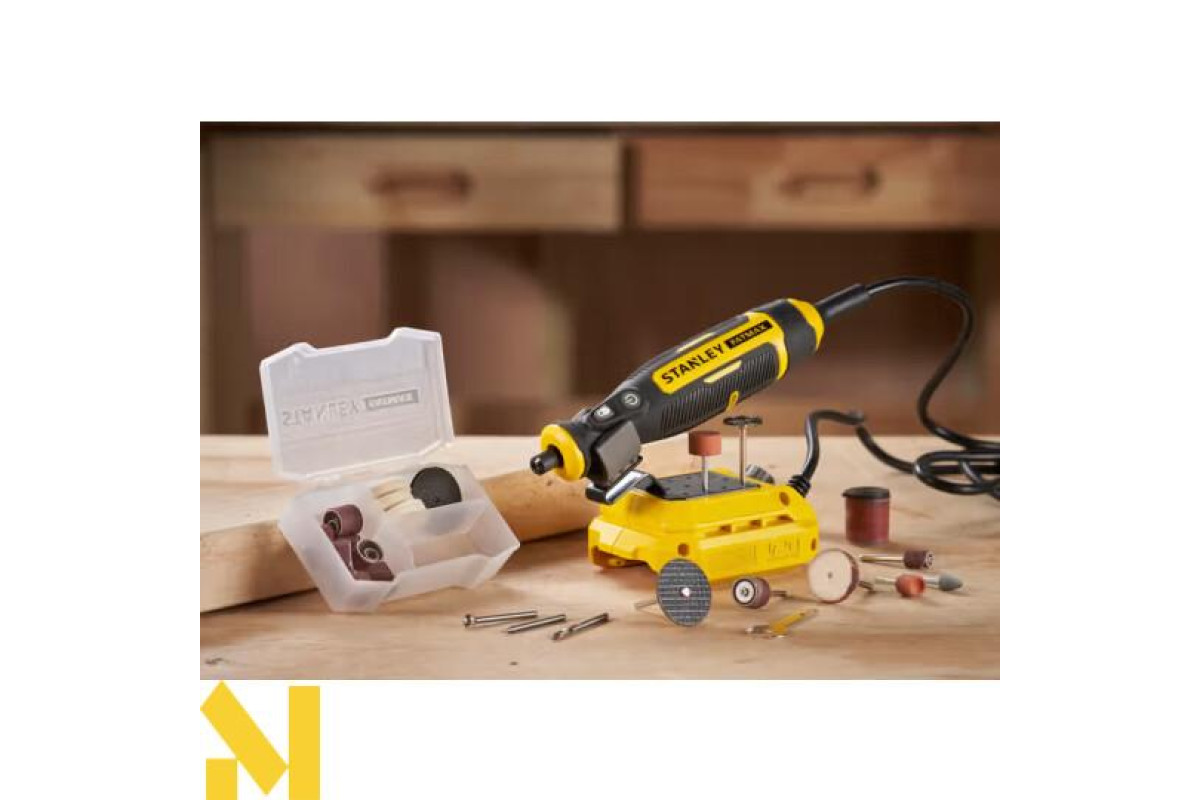 КОРОБКА АКСЕСУАРІВ У КОМПЛЕКТІ: 1/4″ барабанна шліфувальна оправка, 1/2″ барабанна шліфувальна оправка, гайковий ключ, насадки для шліфувального круга з оксиду алюмінію 5/8″ x 3/8″ & 1/2″, шліфувальний круг зі скловолокна 1-1/4″, гвинтова оправка 1/4″, шліфувальні барабани 1/4″ x 1/2″ і 1/2″ x 1/2″, дротяна щітка в комплекті, Хвостовик ріжучого диска, свердло з гравіюванням 1/32″, високошвидкісний різак, конічний шліфувальний камінь, повстяні полірувальні круги, флакон з горщиком і свердло зі швидкорізальної сталі 1/8″.