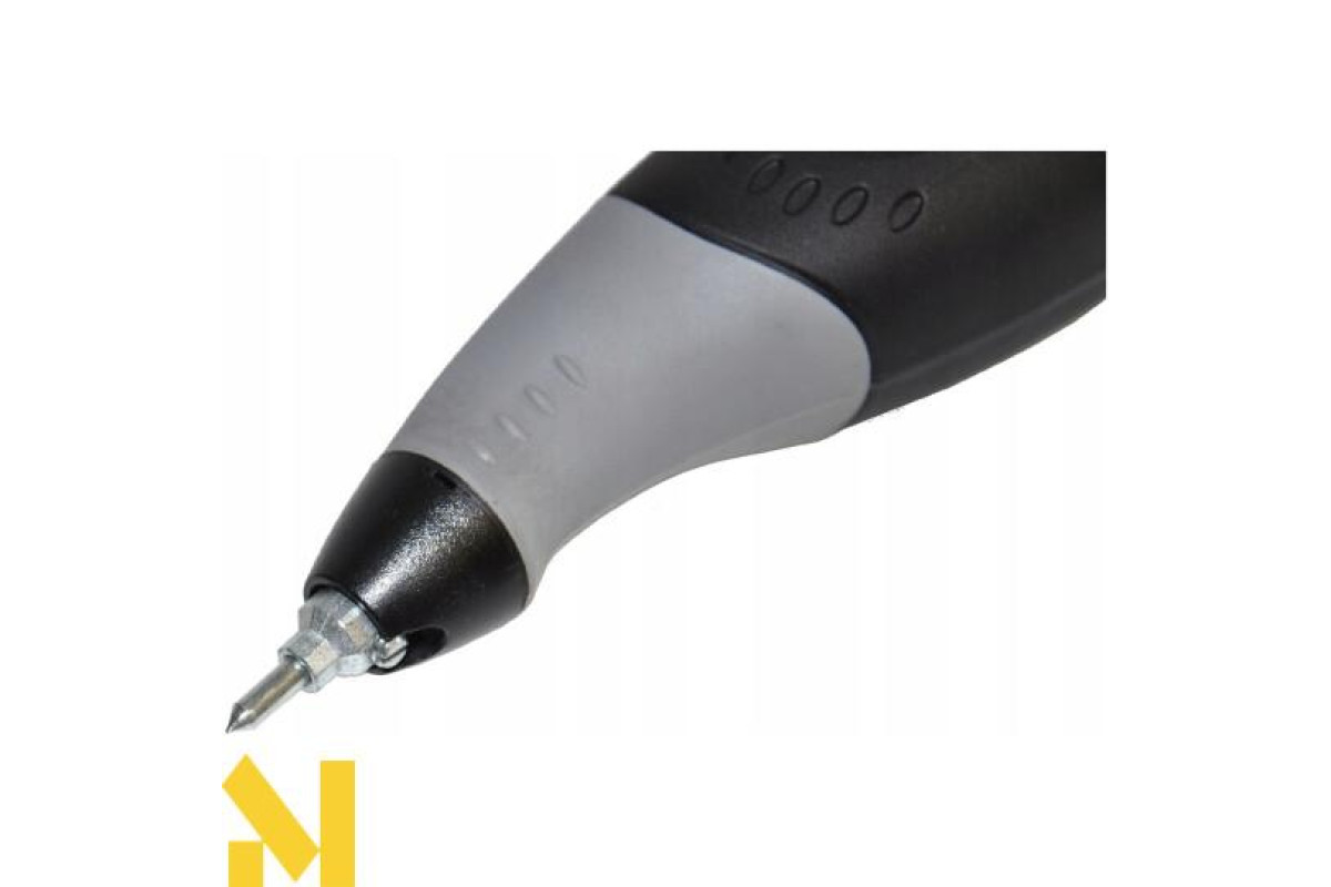 Характеризується цей гравер хорошою ударною функцією, яка здатна забезпечити оптимальний контроль над роботою. До плюсів слід віднести наявність окремого вимикача, який здатен зберегти параметри глибини гравіювання. Завдяки ручці з м’якою накладкою працювати інструментом досить комфортно. А змінна карбідна насадка дозволить здійснювати гравіювання з широкою палітрою матеріалів. У комплектацію також входять шаблони букв і цифр, що суттєво полегшує процес гравіювання.