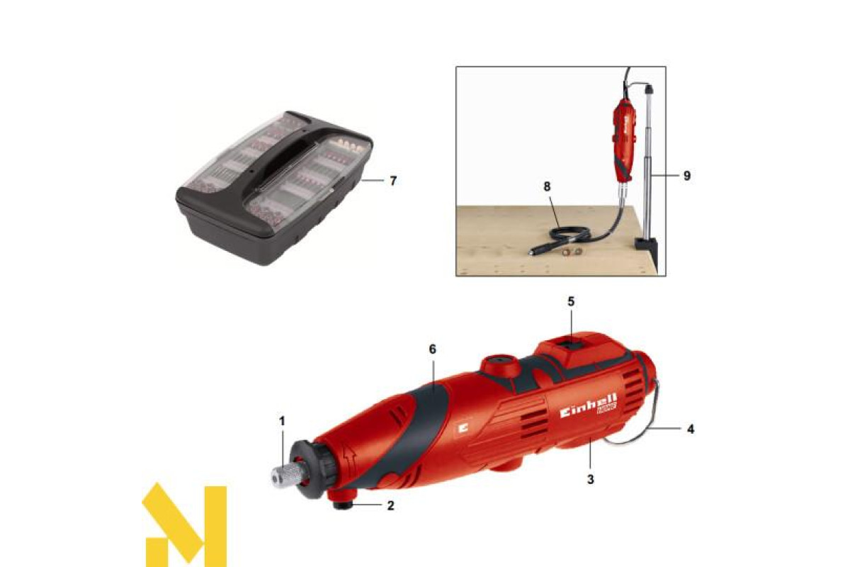 Відмінна комплектація, всілякі насадки для гравірувальних робіт. Гравер Einhell TC-MG 135 E підійде як для домашнього використання, так і для професійного.