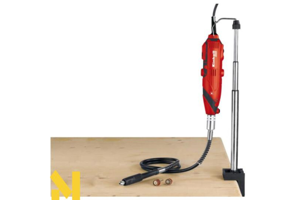 До того ж гравер Einhell TC-MG 135 E має регулювання швидкості, оснащений струбциной і гнучким валом який полегшує роботу з інструментом під час виконання гравірувальних робіт.