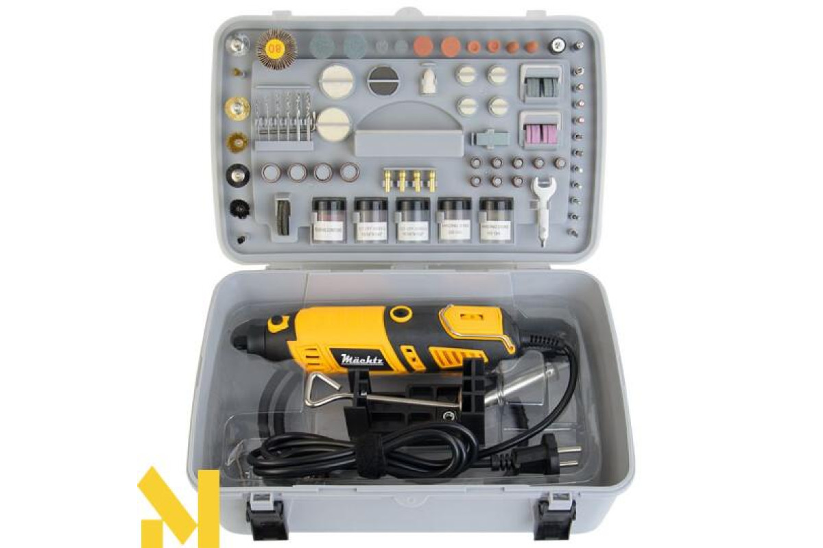 Електричний гравер Mächtz MMG-310 S — це зручний і надійний багатофункціональний інструмент, з розширеним набором із 218 насадок для точних і складних завдань, таких як гравіювання, шліфування, полірування, різання та зачищення. Усі комплектуючі розташовані в зручному кейсі органайзері.