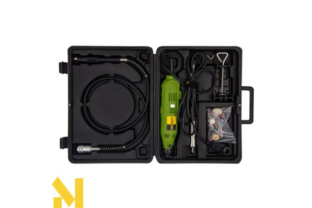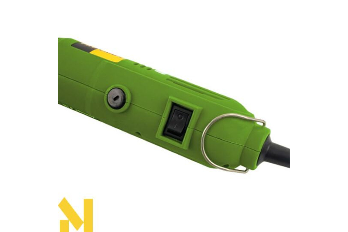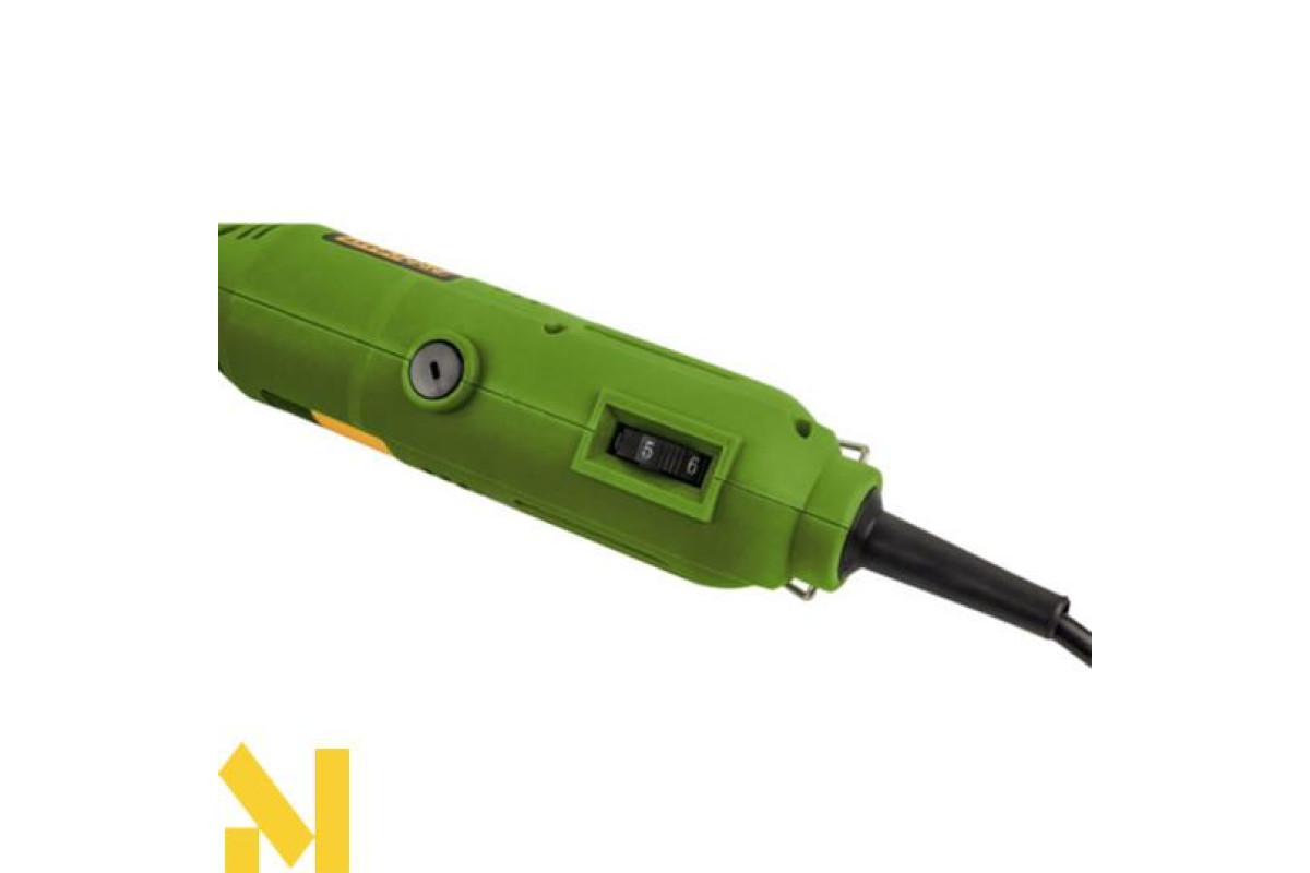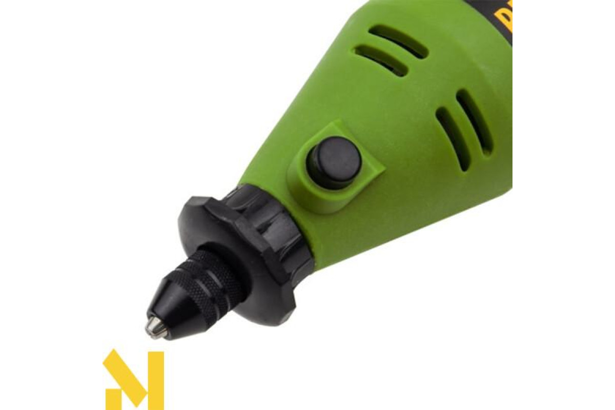 Основною перевагою даної моделі є те, що в ній є спеціальний патрон. Він має розгалуження на 3 боки й надійно, а головне, оперативно фіксується. У патрон поміщають свердло діаметром від 1 до 3,2 мм. Завдяки гнучкому валу (який також є в комплекті), гравером можна працювати навіть в досить важкодоступних місцях. Легка вага і зручна ергономічна ручка значно полегшують роботу.