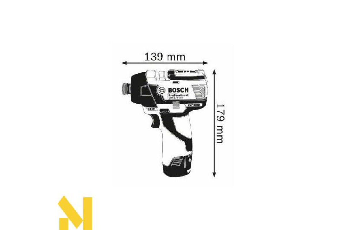 Невеликий, двошвидкісний (0-1200 / 0-2600 об / хв) гайковерт Bosch GDR 12V-110 з високим крутним моментом 110 Нм при роботі в жорстких матеріалах, здатний затягувати і відпускати гайки, загвинчувати і відгвинчувати гвинти і шурупи діаметром 8 мм. Для роботи підходять гвинти з метричною різьбою М4-М12. Працює з ударом 0-2700 уд / хв на 1-й швидкості, 0-3100 уд / хв на 2-й. Наводиться в дію 10,8-вольтним літій-іонним акумулятором 2,5 А * год. Патрон з внутрішнім шестигранником дюйма. Зручний для роботи у важкодоступних місцях.