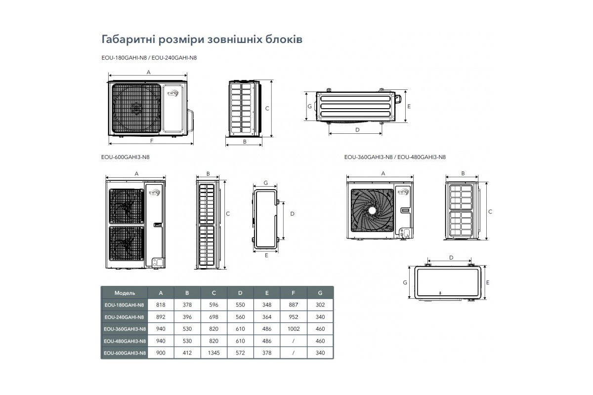 | Розміри зовнішнього блоку (ШхВхГ), мм: | 940x820х460 |