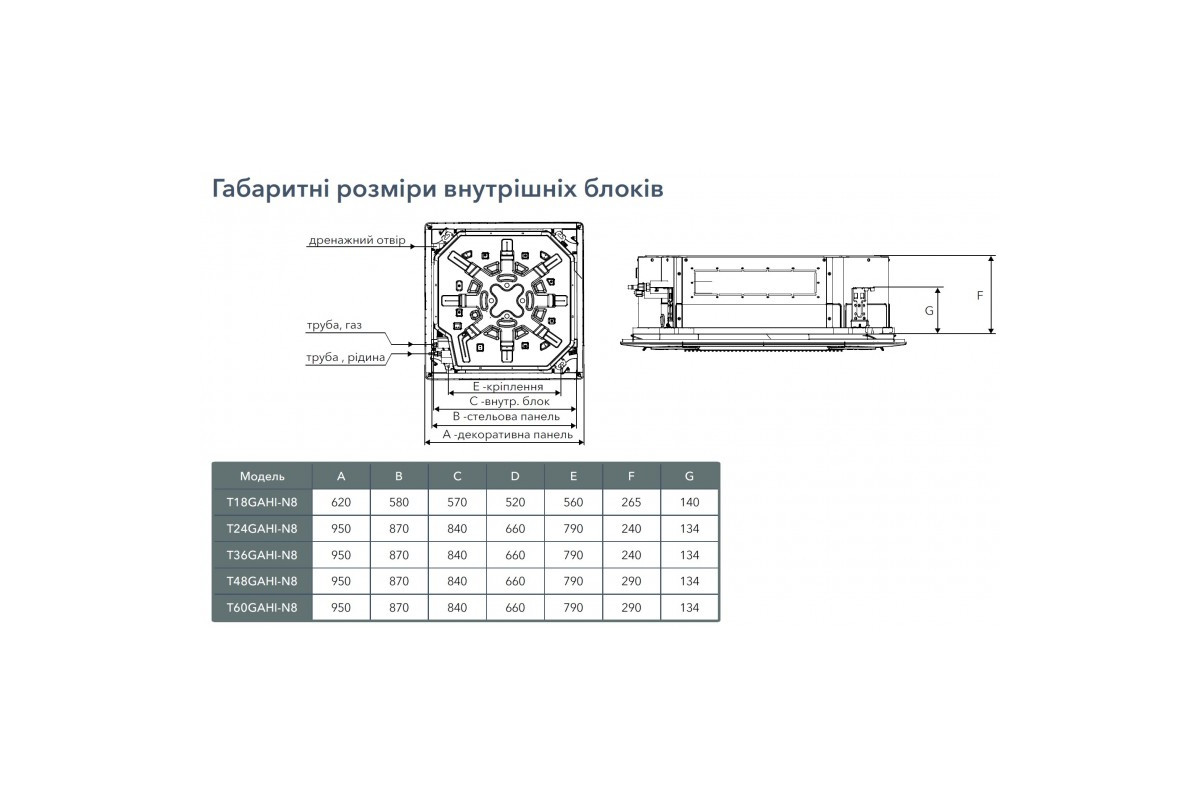 | Розміри внутрішнього блоку (ШхВхГ), мм: | 840х290х840 |