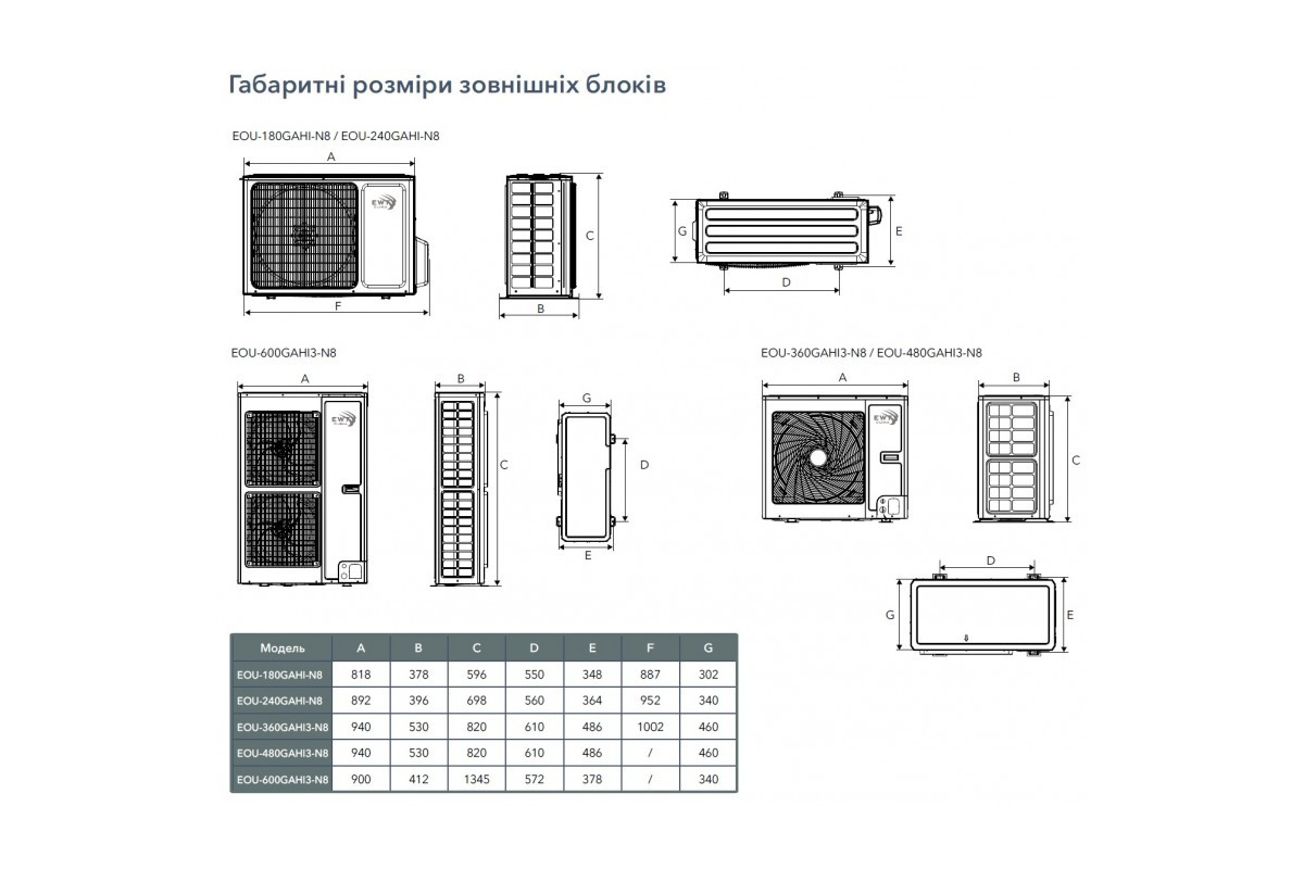 | Розміри зовнішнього блоку (ШхВхГ), мм: | 818x596х302 |