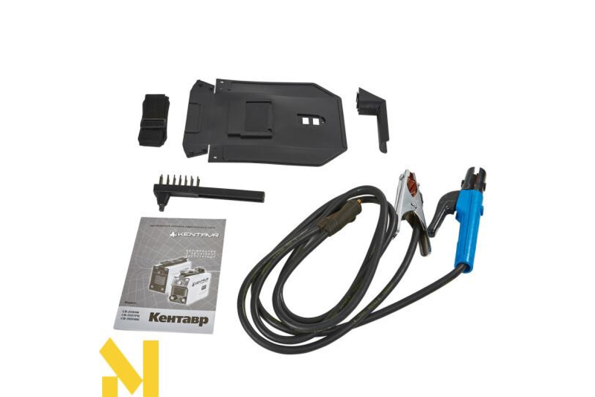 Комплектація зварювального апарату містить у собі все необхідне для проведення зварювальних робіт без додаткових витрат на купівлю інвентарю зварника. До неї входять захисна маска зварника, універсальний «молоток-щітка», а також потужний (300 А) і достатній для комфортної роботи зварювальний кабель із затискачем «Маса», і зварювальний кабель з електродотримачем.