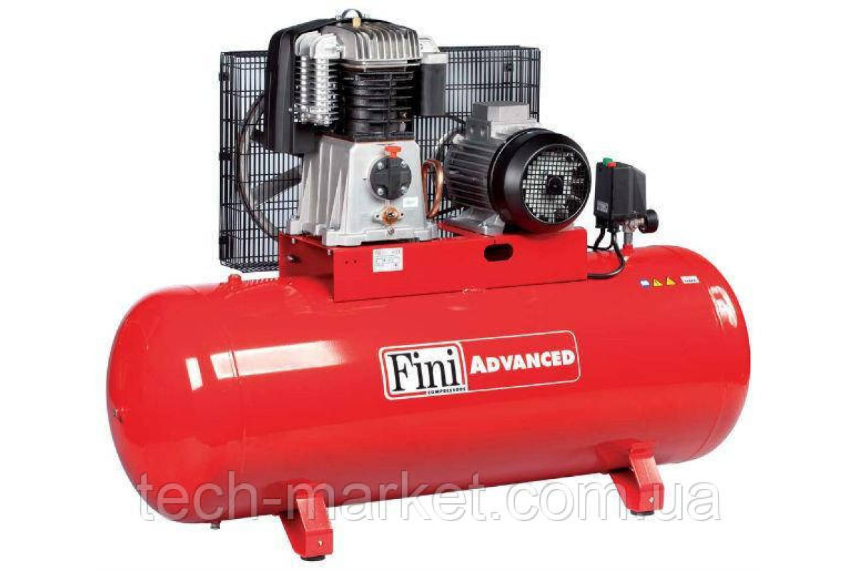 Компресори FINI BK 119-500F-7.5— двоступеневі з ремінним передаванням. Поршневі двотактні компресори з ремінним приводом серії BK 119 оптимальні для застосування в невеликих і середніх автомайстернях. Компресори обладнані простою та надійною системою керування, що контролює роботу компресора й автоматично підтримує заданий тиск. Поршневі компресори мають три штуцери для різних варіантів приєднання. Простота обслуговування та висока якість комплектуючих гарантують надійну роботу компресора впродовж тривалого терміну. Для обслуговування не потрібен спеціальний персонал. Перевагами цієї моделі є: мастило рухомих частин за допомогою розпилення оливи; ефективне охолодження з використанням крильчатки великого розміру; повітрозабарник спеціальної конструкції для поліпшення охолодження насосної частини; економна витрата мастильного мастила завдяки застосуванню чавунних циліндрів; автоматичне вимкнення компресора у разі досягнення заданого тиску; автоматичне вимкнення компресора в разі перевантаження; трифазний електропривод; клапан дренажу конденсату зі стопором і кульовий кран на лінії подавання повітря; універсальний пневматичний роз'єм на редукторі.