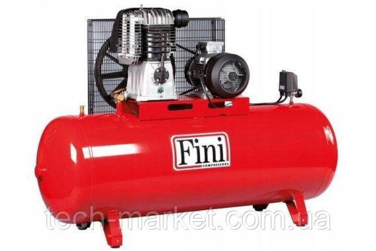 Компресори FINI BK 120-500F-10— двоступеневі з ремінним передаванням. Поршневі двотактні компресори з ремінним приводом серії BK оптимальні для застосування в невеликих і середніх автомайстернях. Компресори обладнані простою та надійною системою керування, що контролює роботу компресора й автоматично підтримує заданий тиск. Поршневі компресори мають три штуцери для різних варіантів приєднання. Простота обслуговування та висока якість комплектуючих гарантують надійну роботу компресора впродовж тривалого терміну. Для обслуговування не потрібен спеціальний персонал. Перевагами цієї моделі є: мастило рухомих частин за допомогою розпилення оливи; ефективне охолодження з використанням крильчатки великого розміру; повітрозабарник спеціальної конструкції для поліпшення охолодження насосної частини; економна витрата мастильного мастила завдяки застосуванню чавунних циліндрів; автоматичне вимкнення компресора у разі досягнення заданого тиску; автоматичне вимкнення компресора в разі перевантаження; трифазний електропривод; клапан дренажу конденсату зі стопором і кульовий кран на лінії подавання повітря; універсальний пневматичний роз'єм на редукторі.