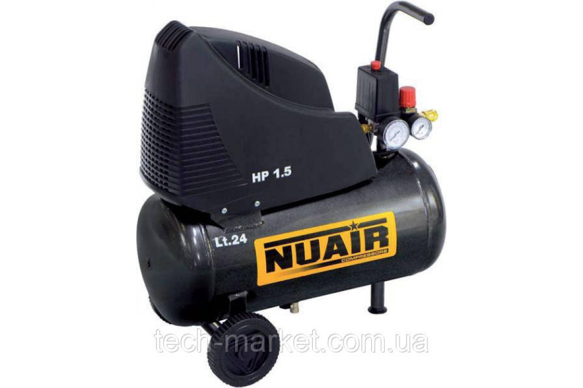 Безоливний компресор NUAIR OL195/24 — це дуже економічна та зручна модель. Компресор виготовлений із матеріалів, які сприяють зменшенню тертя, що відповідно збільшує термін роботи компресора. Безоливний компресор NUAIR OL195/24 застосовується для отримання стисненого повітря, необхідного під час виконання найрізноманітніших завдань. Обладнаний однофазним електродвигуном потужністю 1100 Вт. Він має повітряне охолодження й захищений запобіжником, що забезпечує стабільну роботу та довгий строк експлуатації. Попри свою незначну вагу, всього 18 кг, і невеликі розміри (600x250x590 мм) компресор здатний виробляти тиск до 8 барів. На корпусі компресора є дренажний клапан для видалення конденсату, що скупчилися. Компресор NUAIR OL195/24 ідеально підійде для медичних потреб, майстерні, гаража або дачі. Має 2 пластикові колеса для зручного переміщення. Безоливні компресори NUAIR OL195/24 застосовуються для накачування автошинів, м'ячів, камер, лакофарбових робіт, для продування труб, під час роботи з пневматичними інструментами: дрилями, відбійними молотками, шурупокрутами.