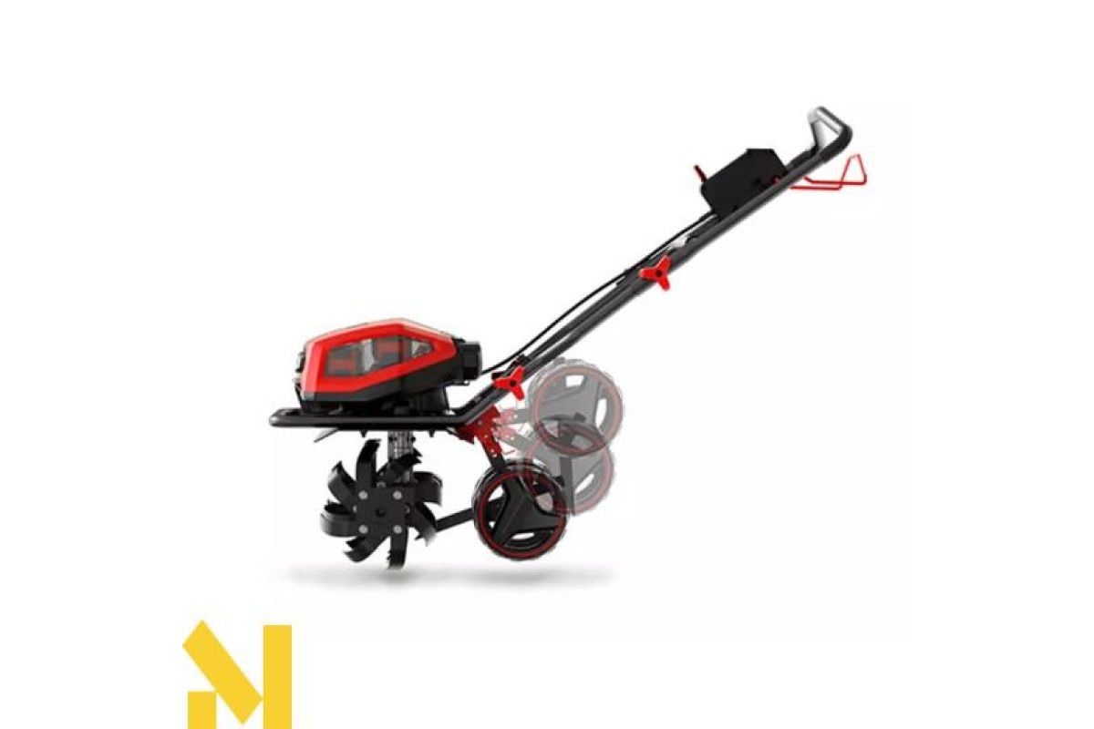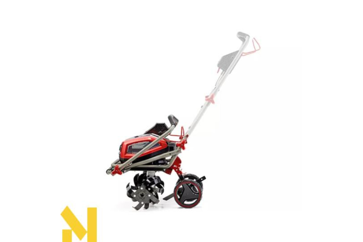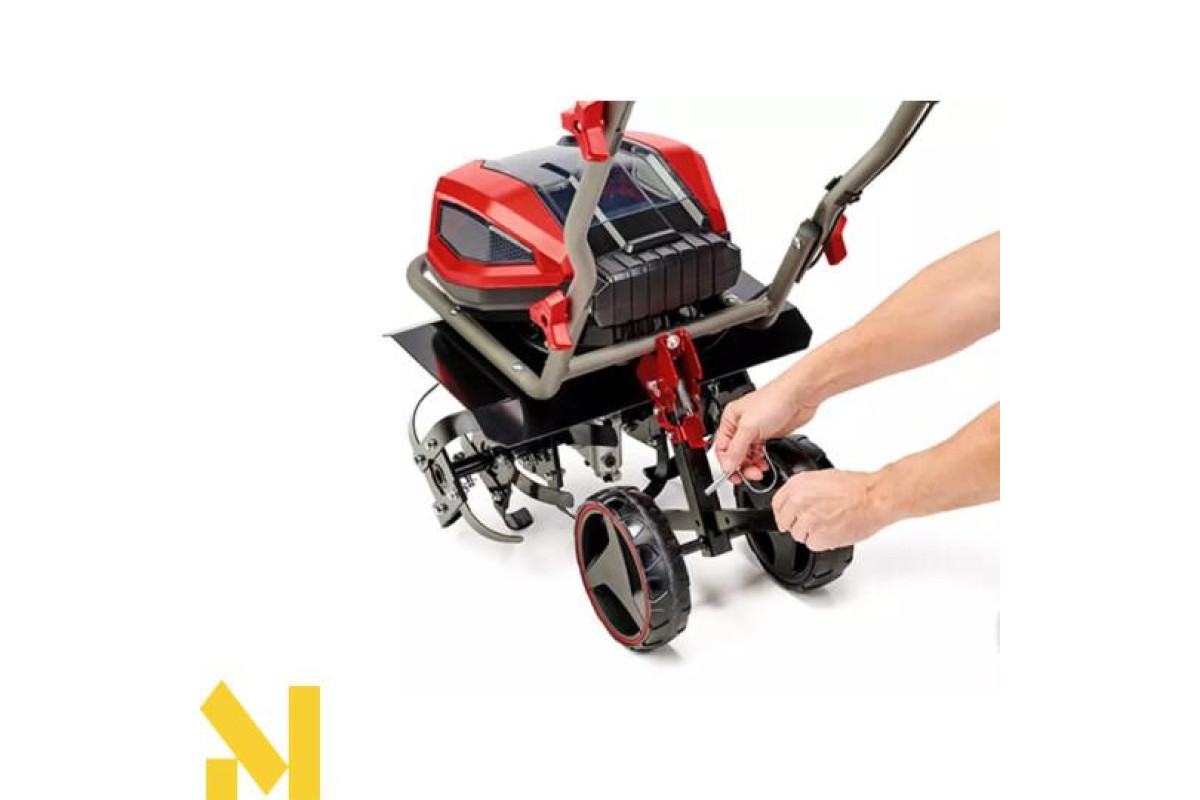Колеса, що регулюються по висоті, забезпечують зручне транспортування та зберігання акумуляторної мотоблока Einhell.