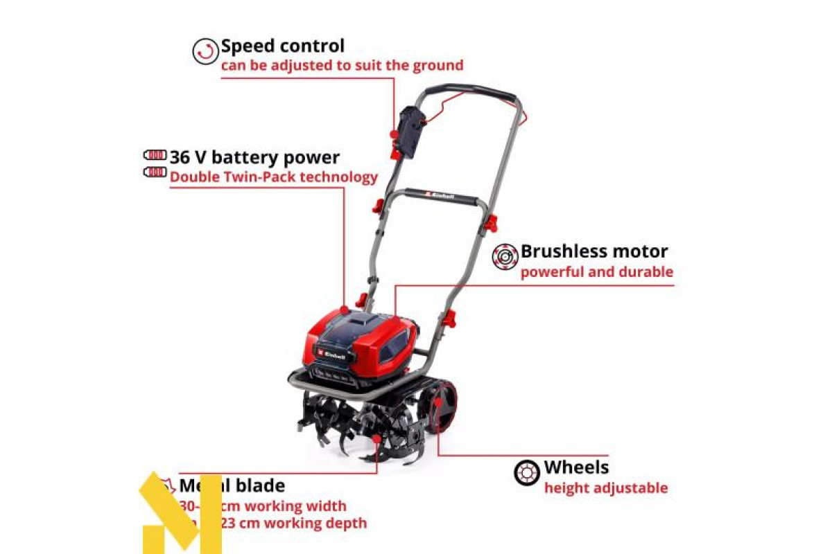Акумуляторна фреза Einhell GP-CR 36/45 Li E BL- Solo — це потужний і зручний помічник для розпушування ґрунту на грядках середнього та більшого розміру, а також на інших ділянках саду без трави.