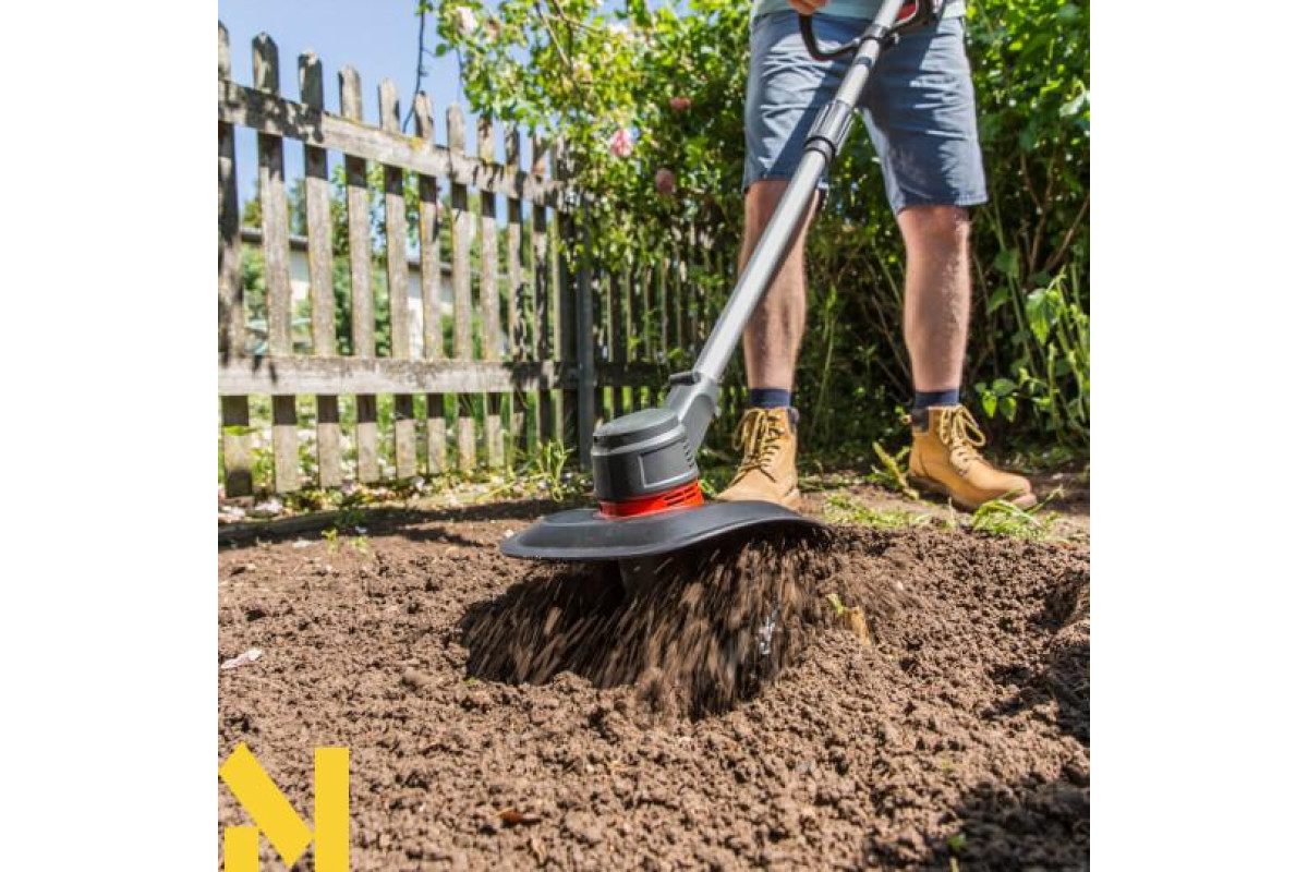 Розпушування, розпушування ґрунту та прополювання – основні сфери застосування цього пристрою. Завдяки невеликій вазі робота виконується без надмірних зусиль. Складаний держак дозволяє миттєво скласти пристрій, що полегшує його зберігання на невеликій площі. Бездротова свобода забезпечує безпечне та гнучке використання в будь-який час доби.