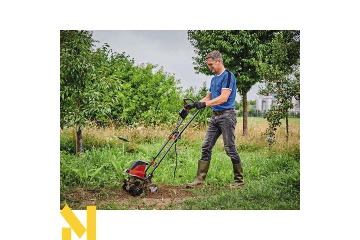 Електричний культиватор Einhell GC-RT 1545 M є легким та надійним садовим інструментом для ефективної обробки ґрунту. Він оснащений двигуном потужністю 1500 Вт, який забезпечує достатню продуктивність і плавність ходу при ширині обробки в 45 см і невеликій вазі культиватора. Швидке просування навіть через твердий ґрунт забезпечується міцними лопатями культиватора. Для безпечної роботи електричний культиватор Einhell GC-RT 1545 M оснащений 2-точковим запобіжним вимикачем, який відключає ножі культиватора, як тільки ви відпускаєте вимикач. Довга ергономічна рукоятка культиватора Einhell GC-RT 1545 M забезпечує комфортну роботу і може бути складена, що дозволяє зберігати його в мінімальному просторі. Крім того, культиватор має кабельний затискач для кріплення кабелю, він дозволяє зняти напругу та захищає кабель живлення від зносу та пошкоджень.
