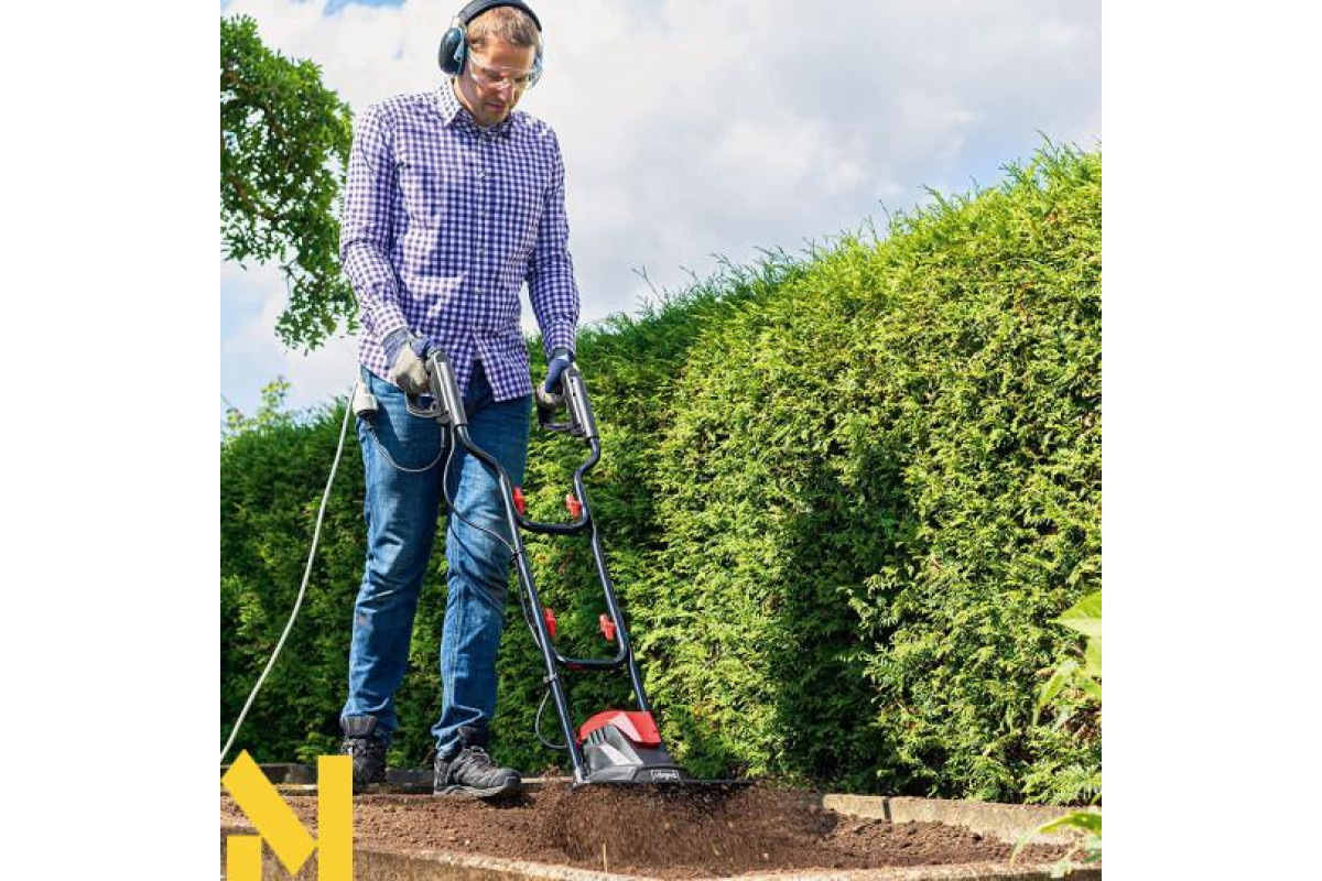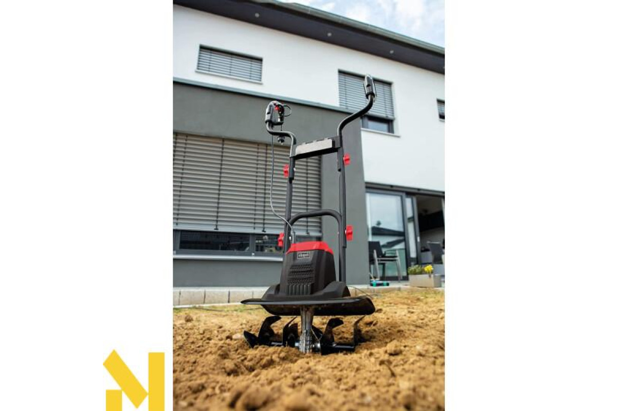 З культиватором з електродвигуном MTE380 від Scheppach ви можете працювати без набридливих вихлопних газів та гучного шуму двигуна.