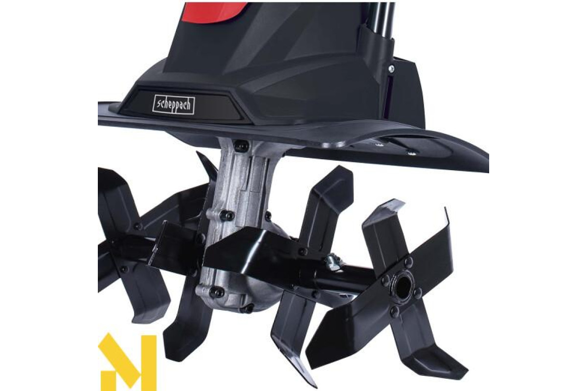 Мотокультиватор Scheppach MTE380 із потужним двигуном потужністю 1 кВт.