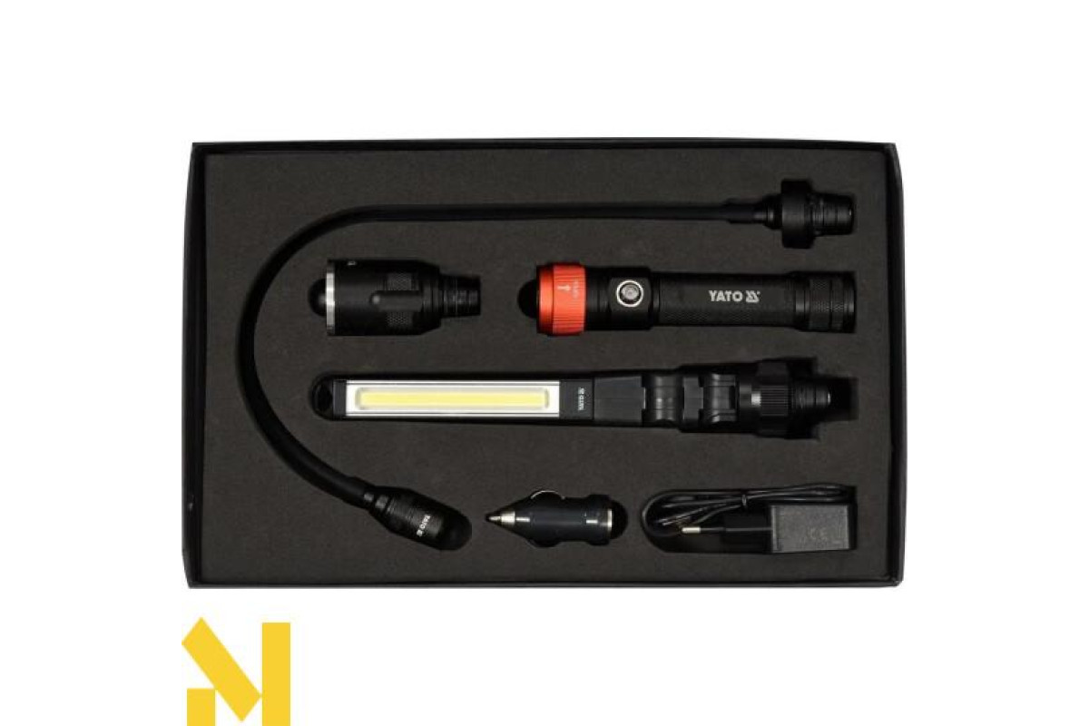 Багатофункціональний набір з 3-х світильників для майстерень в одному загальному корпусі. Система швидкого відключення гарантує легке і швидке з'єднання головок з корпусом лампи. Потужний літій-іонний акумулятор 3,7 в 2200 мАг гарантує від 1,5 до 8,5 годин роботи. Набір, упакований в міцну зручний валізу з зажимами, полегшить зберігання і транспортування, а також стане відмінним подарунком.