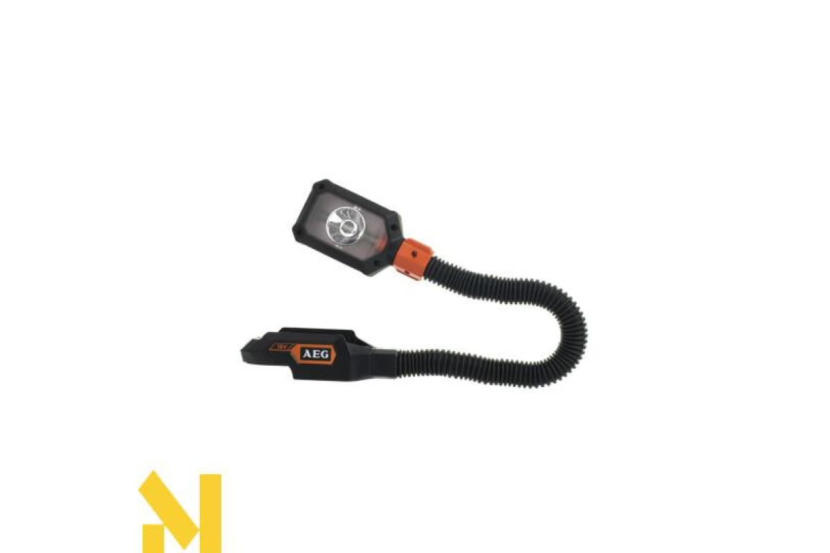 Акумуляторний ліхтар із гнучкою штангою AEG BFAL-18 оснащений одним світлодіодом, який може використовуватися у двох режимах: освітлення приміщення та спрямований пучок світла. Виріб має гнучку штангу. У разі використання літій-іонного акумулятора ліхтар може працювати до 18 годин без заряджання.