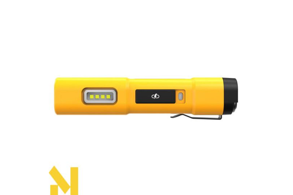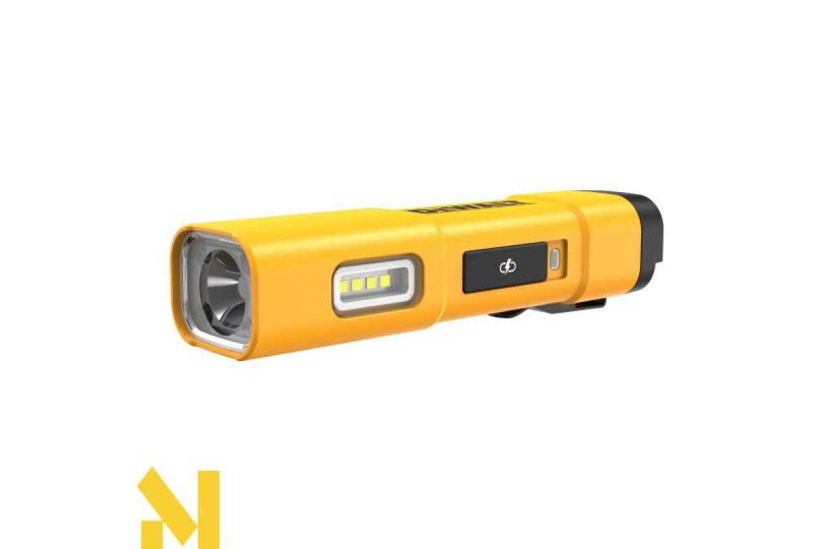 Модель DeWALT DCL183 є гібридом класичного ліхтарика з яскравістю 250/1000 люмен (6,5/2,5 годин роботи) + бічне розсіяне світло яскравістю 400 люмен (6,5 годин роботи).