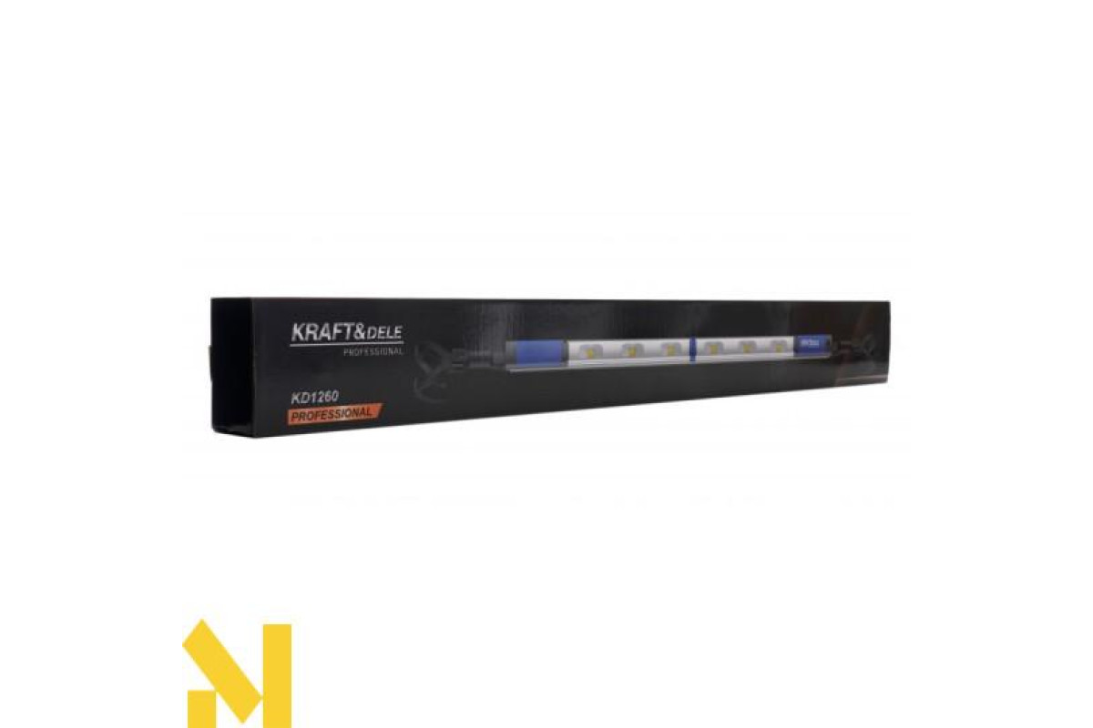 Професійний натяжний ліхтар Kraft&Dele ,модель KD1260- прилад, який підходить для різних видів ремонту автомобіля. Лампа має кнопку регулювання яскравості, яка дозволяє вибрати повну або половинну потужність.
