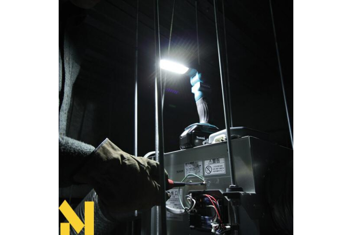 Акумуляторний ліхтар Makita DEADML801 - це потужний світлодіодний ліхтар, розрахований на роботу від акумулятора 14,4 або 18 В. Ліхтар має обертову складну головку, яка дозволяє використовувати його для широкого спектру робіт. За допомогою двохпозиційної кнопки можна вибрати повну (12 світлодіодів) або неповну (6 світлодіодів) яскравість. Наявність висувного металевого гака, який можна зберігати в задній частині головки ліхтаря значно підвищує зручність використання і розширює спектр застосування ліхтаря.