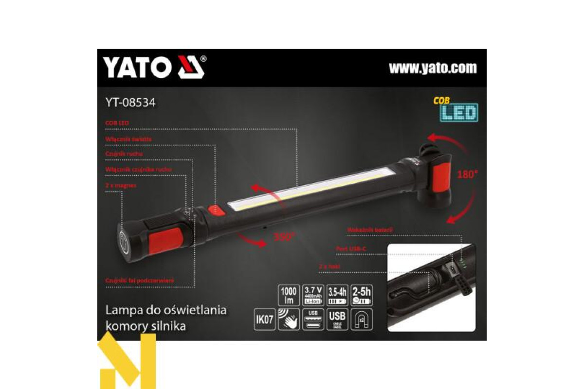 YATO YT-08534 - підкапотний робочий ліхтар для освітлення моторного відсіку та інших робіт майстерні з двома способами активації - вимикачем або датчиком руху.